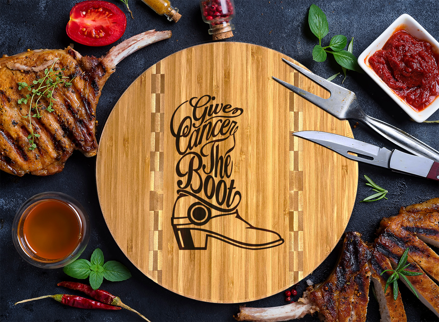 With the laser engraving the cutting board can be customized for that special personal touch. Great for cutting, chopping and dicing - this butcher block is a do it all kitchen tool anyone would love to have. The 11.5" diameter makes it a great size for cutting meats, cheese, fruits and vegetables. A quick hand wash and it is ready to use again.