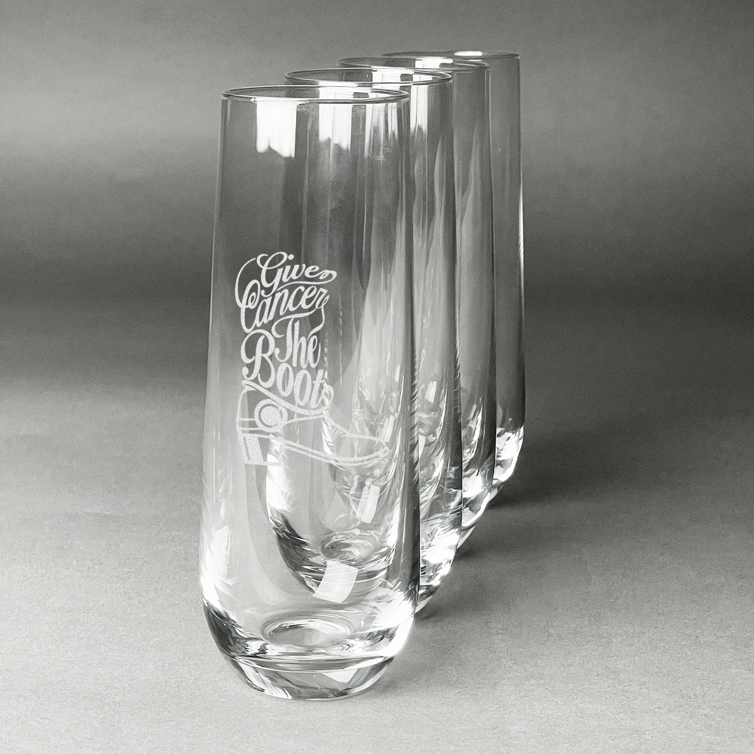 Design your custom stemless champagne flutes and we will then laser engrave your unique design on them for you. Whether they are a special gift for a bride and groom, for your New Years Eve party, or a bachelorette party you are sure to be able to add a custom personalized touch to make them perfect for the occasion.