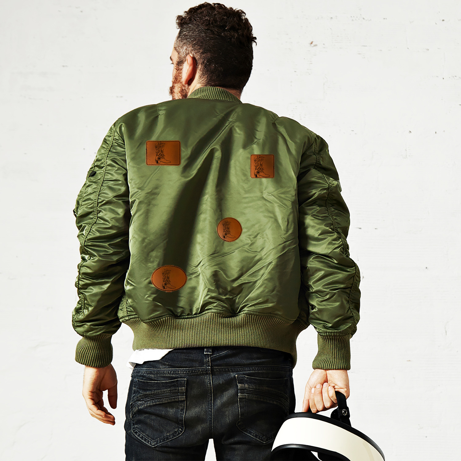 The leather patches are laser engraved on the front and have an adhesive on the back. The adhesive is relatively strong, however as these are iron on patches, heat has to be applied to create a more permanent bond. (See application instructions below).