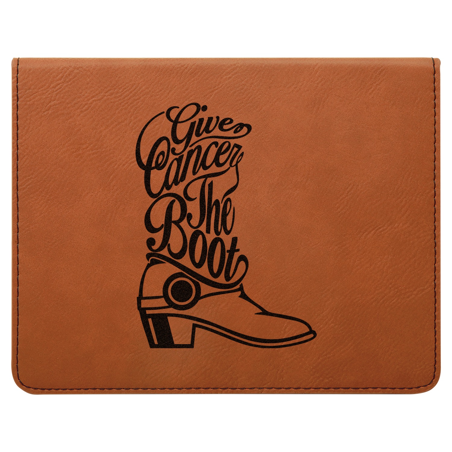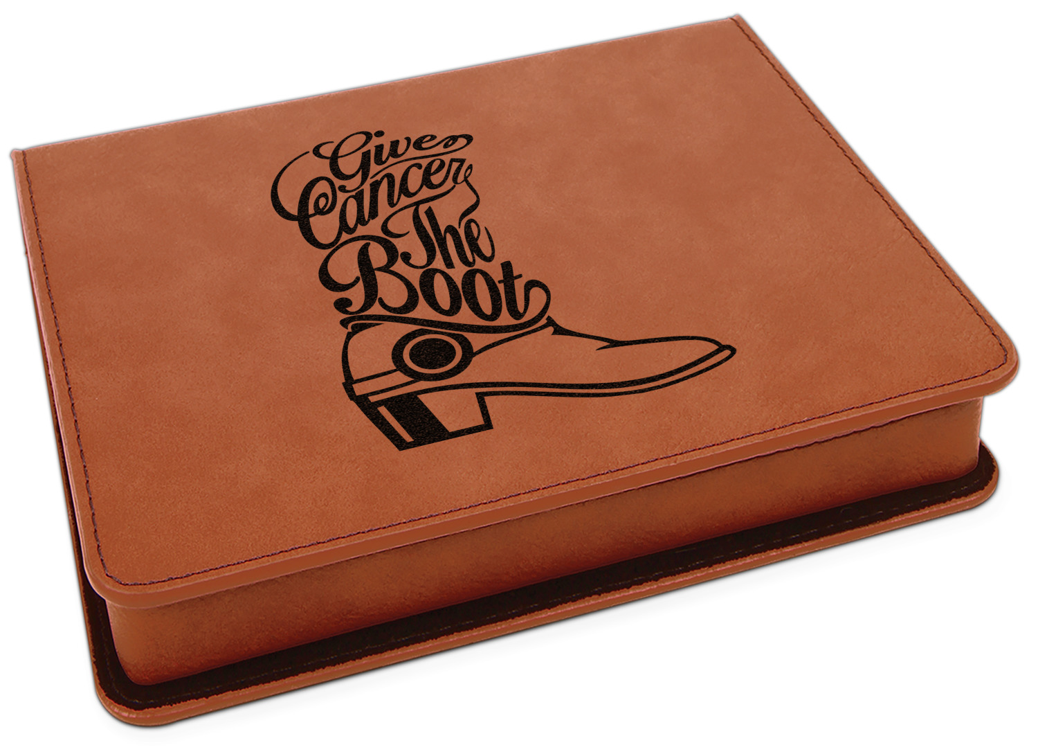 This set includes a wine stopper, pourer, drip ring, and a corkscrew! The exterior of the box is a gorgeous, cognac-brown leatherette, while the interior is covered in a black, velvety material. Four foam indentations, unique to the shape of the wine tool, are found at the bottom half of the box's interior. The tools fit snugly into each of their designated spots, and the foam material helps to protect the integrity of your tools. Each of the wine gadgets features a bamboo accent, with the location and style depending on the tool itself. We laser engrave your personalized design onto the lid of the box, which easily flips open and is secured closed by a small magnet. The wine accessories box measures at 7 by 5.5 inches in total.