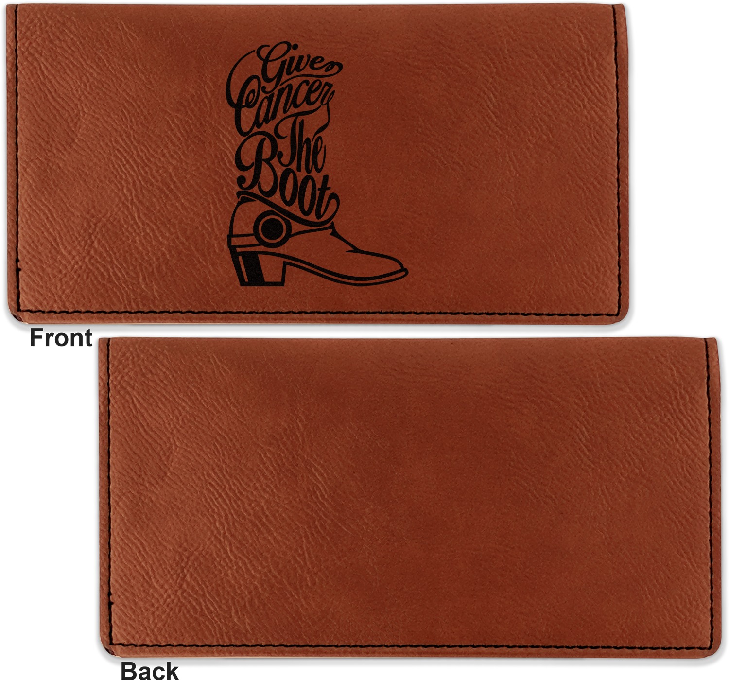 Go into our design center to start personalizing. Your checkbook cover will be laser engraved, making the graphic or text a black color. Choose a fun saying, monogram, or font to go on your checkbook cover. You have the opportunity to do it double or single sided.