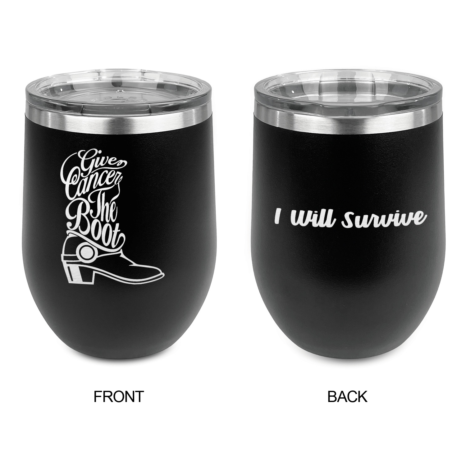 Design your wine tumbler with a cool graphic or quote. Even put your initials or monogram! These cups are laser engraved, which looks extra sharp on the metal tumbler.