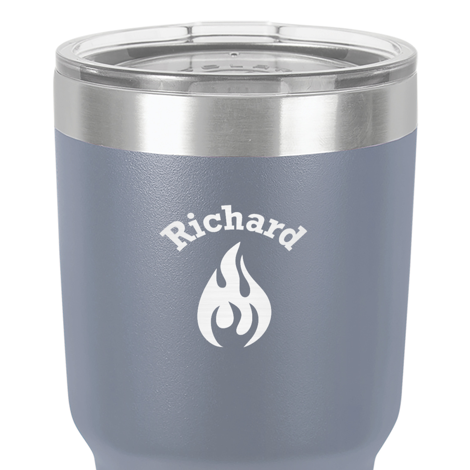 With our personalized 30 oz double wall stainless steel tumblers, you'll never have to settle for a plain, boring tumbler again! These tumblers will be a wonderful addition to your drinkware collection and will make those long commutes much brighter. Personalize one for yourself, or give these personalized tumblers as a gift to relatives, friends, or coworkers!