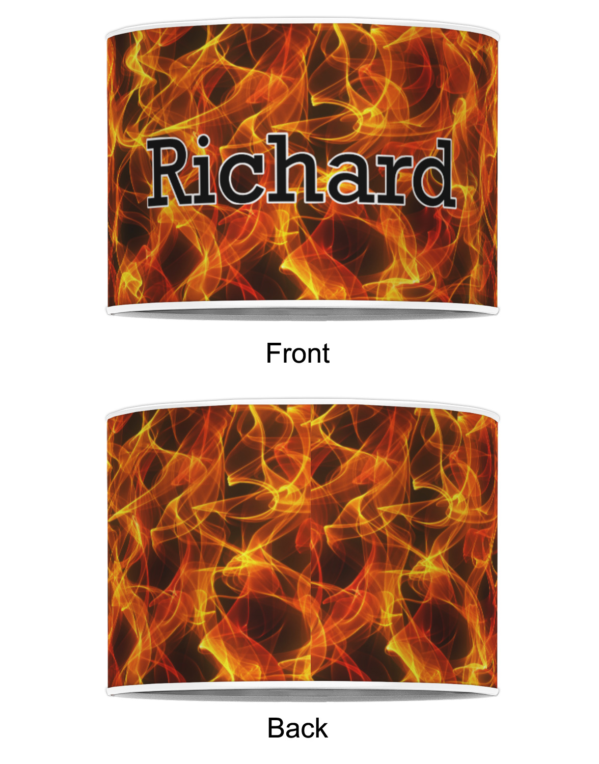 Hop on our design center to get started with this flaming design. Change the background or text to really make it yours. Change a little or change it all. Whatever you do, make it you. If you ever need help in our design center don't hesitate to give us a call. We are always happy to help.