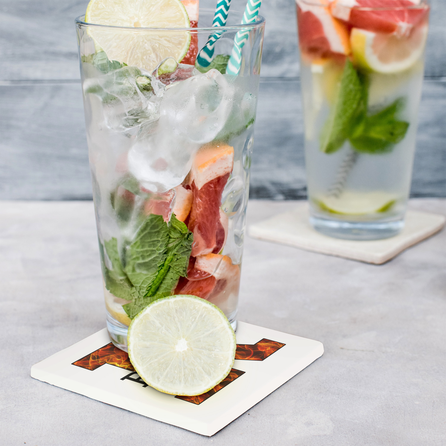 These customized stone coasters are perfect for use with beverages that are served in drinkware that "sweat". When cocktails, sodas, iced tea, water, etc. are served with ice in a regular glasses (non insulated glasses), they release condensation that drips down the outside of the glasses.