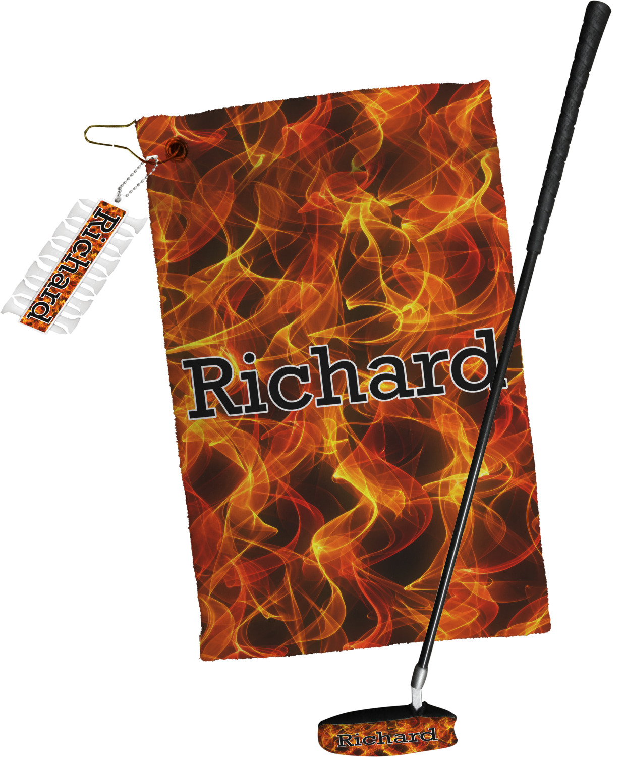 The custom printed putter cover is also part of a golf towel gift set, which includes a golf towel, this putter cover and golf tees & ball marker set, so you may want to consider purchasing the set to save some money!