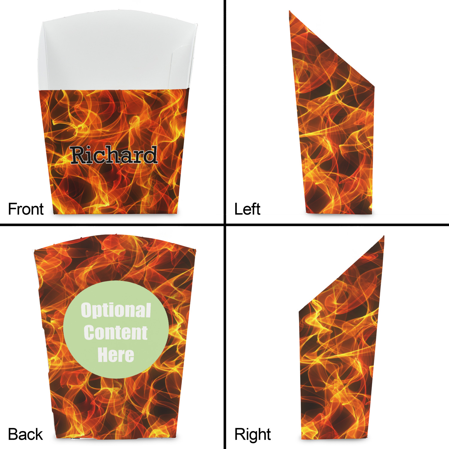 These favor boxes are printed in full color on quality cardstock - so coordinating the french fry favor boxes to match your event's themes or colors should be a breeze. You can upload your own design including artwork, logos or photos