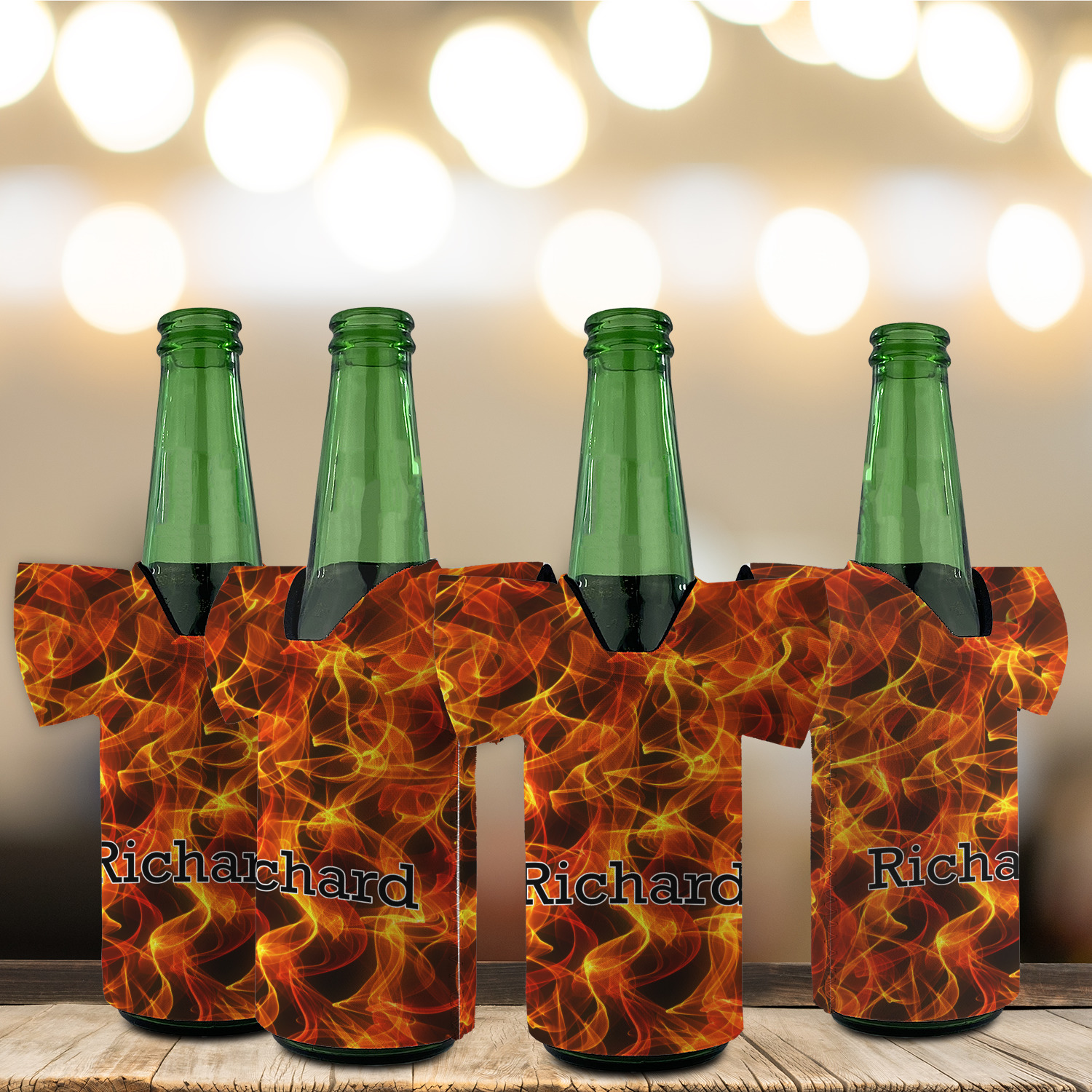 Fabricated from a thick, insulating neoprene, these custom can sleeve keep your drink cold, while proudly displaying your customization on all sides. These can sleeves are designed to fit most 12oz bottles. Available in two types - zipper cooler for insulating the full bottle or the jersey style for sports season. Also available as a single can sleeve or in a set of 4 for you to share with friends and family. For convenient storage, they can also be folded.