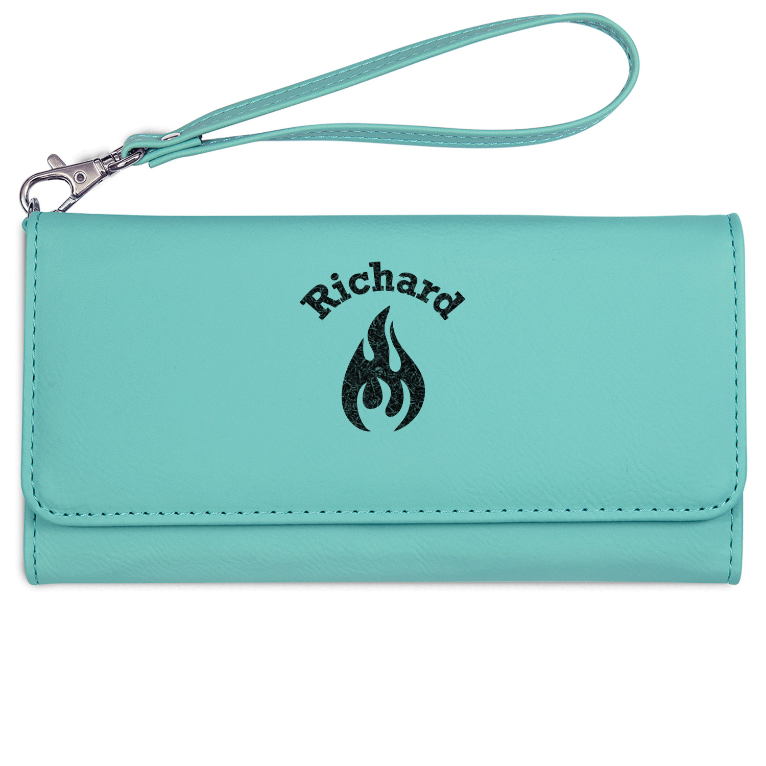 These personalized ladies leather wallets are available in 2 colors - rawhide / cognac and teal.
