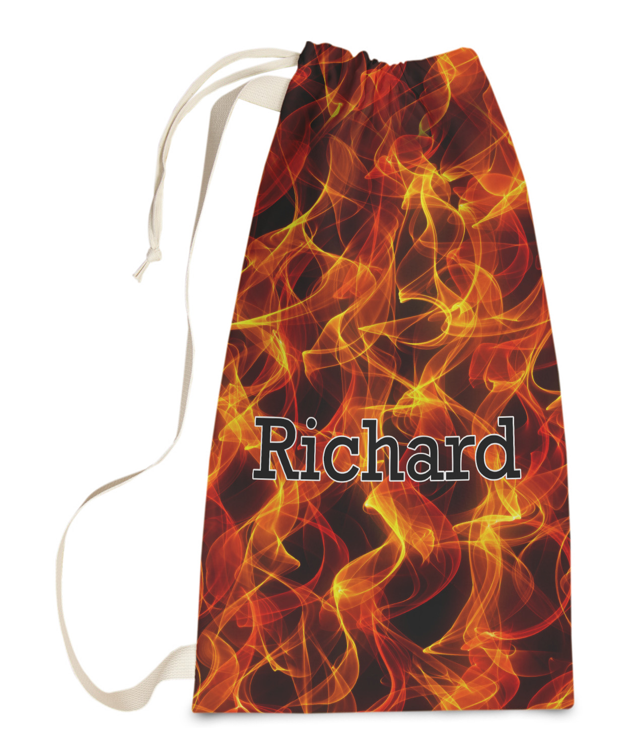 Carry your laundry in style with these customized laundry bags. Available in two sizes, featuring a natural colored woven strap and a cinch cord, these bags hold a lot of clothes or anything else you want to fit in them.