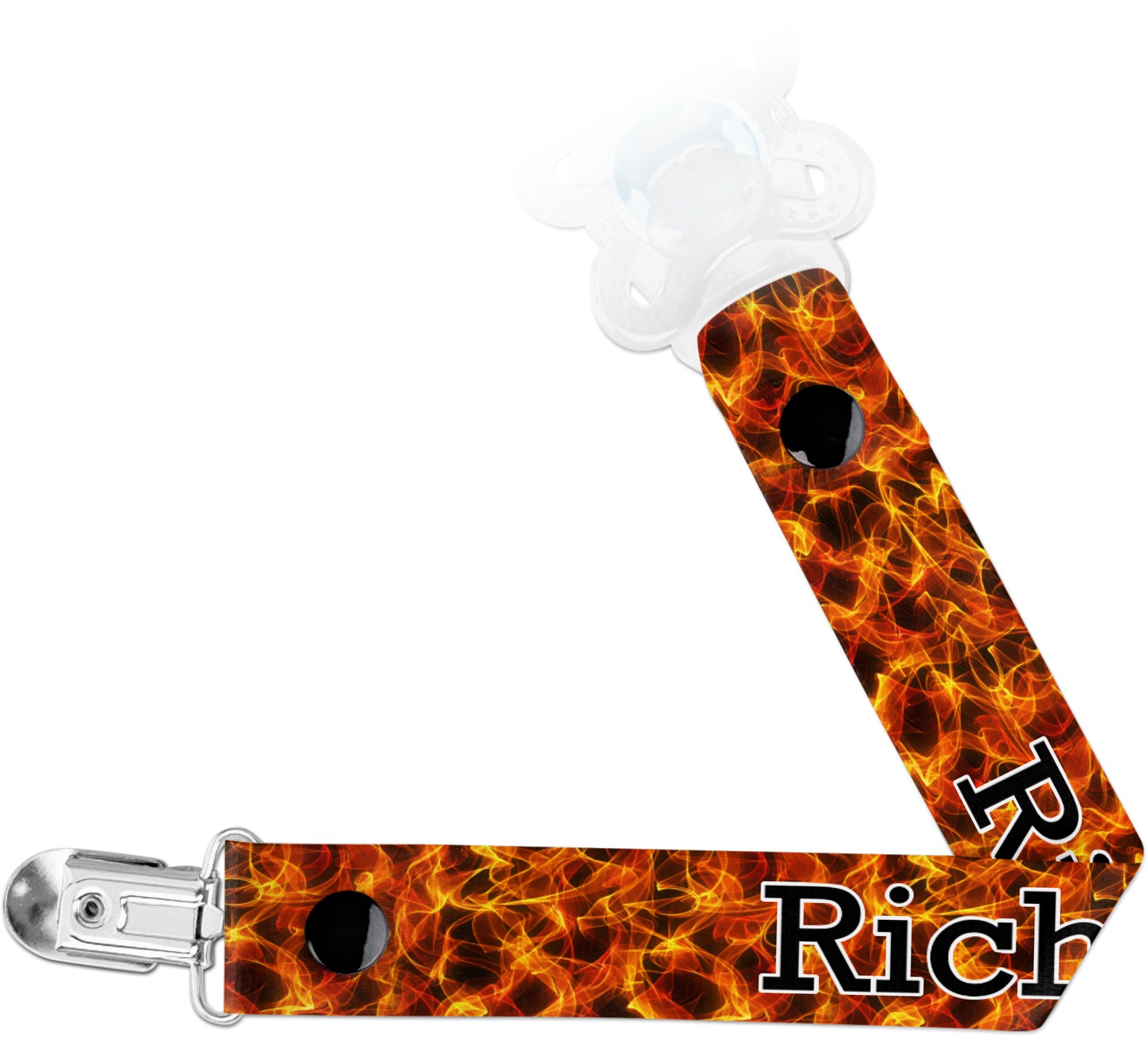 This personalized pacifier clip is the ideal size and measures at approximately 7.5 inches in length, when either end is snapped closed. On one end, you'll find a snap button. This button of your baby's pacifier holder is what can be attached to their pacifier to hold is securely in place. Simply open the snap, slip it through the pacifier opening, and snap it back into place. On the opposite end of this baby pacifier holder, you'll find a metal clip that can secure to a baby's collar or sleeve. This clip ensures that the strap stays in place, and that your baby's pacifier is always on hand.