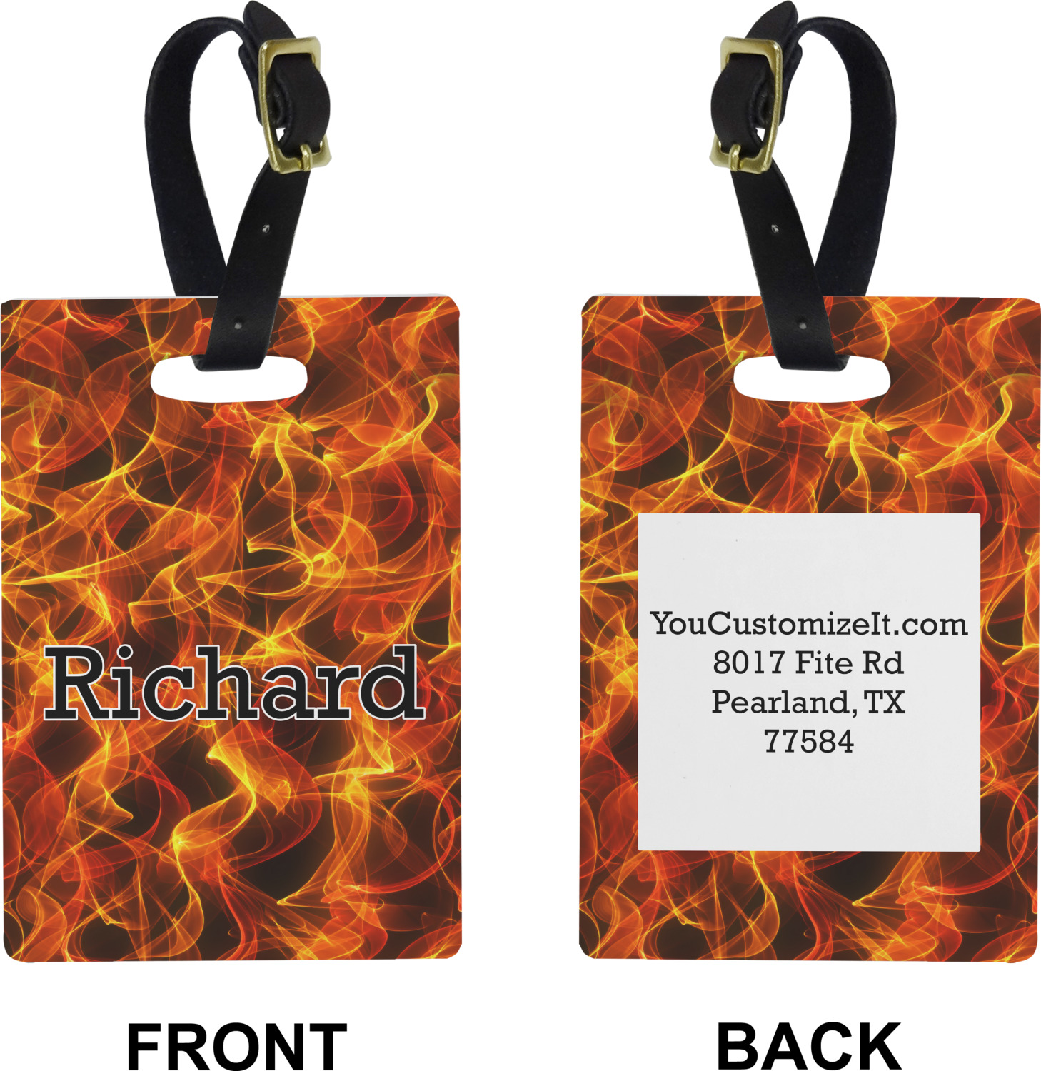These cute luggage tags are made of a fiber-reinforced, UV-resistant plastic, making them waterproof and durable enough for both everyday use and the rugged adventures of any traveler! A leather strap with holes and a buckle is included with your purchase and can be used to attach your custom luggage tag to any suitcase, backpack, or duffel bag. You can design these travel tags as you wish; your customization will be displayed across the front, while the back will show as little or as much personal information as you want.