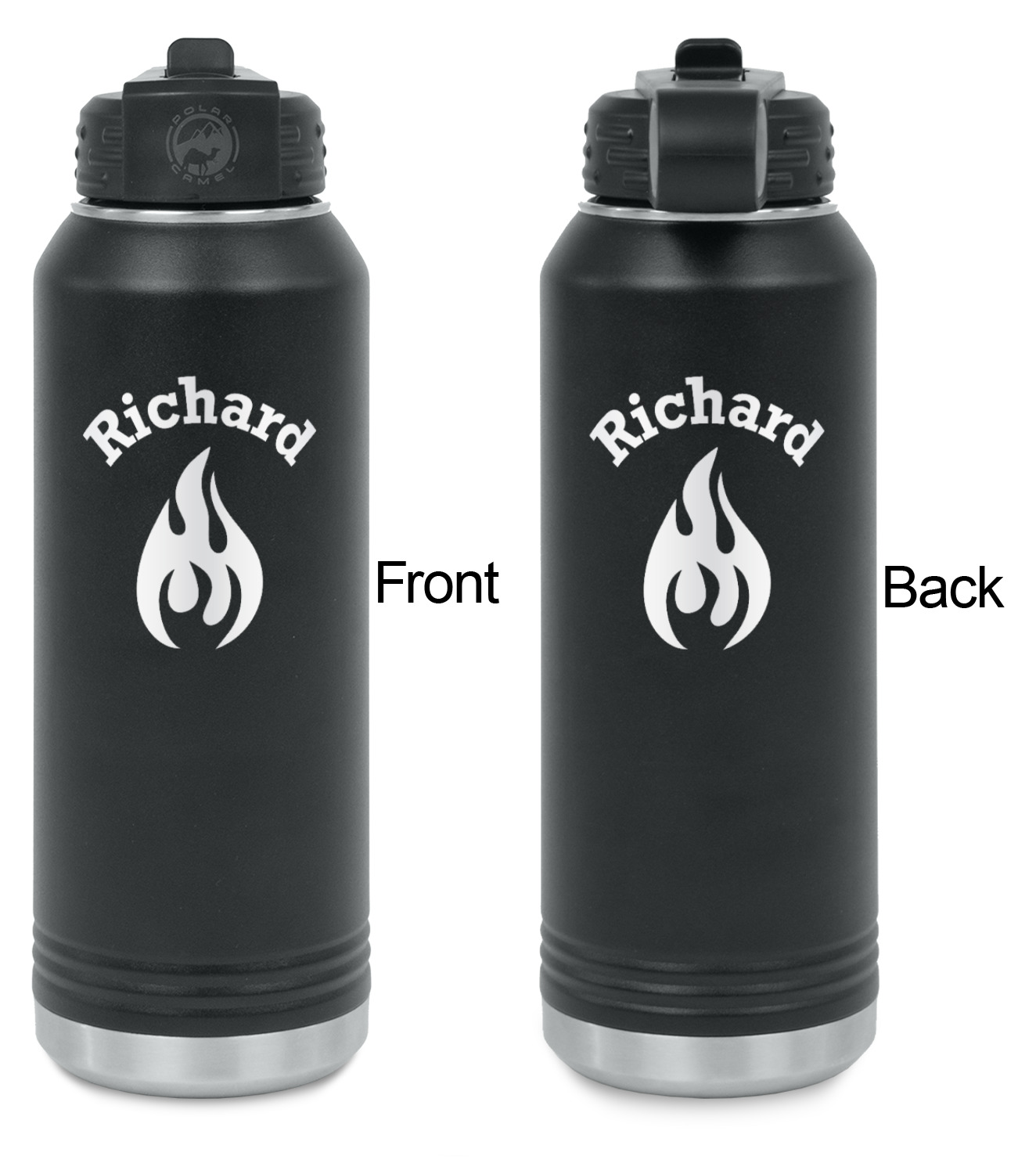 Our laser engraved stainless steel water bottles are designed for on the go lifestyle. These water bottles are perfect for the gym, the office, traveling, camping, hiking etc.