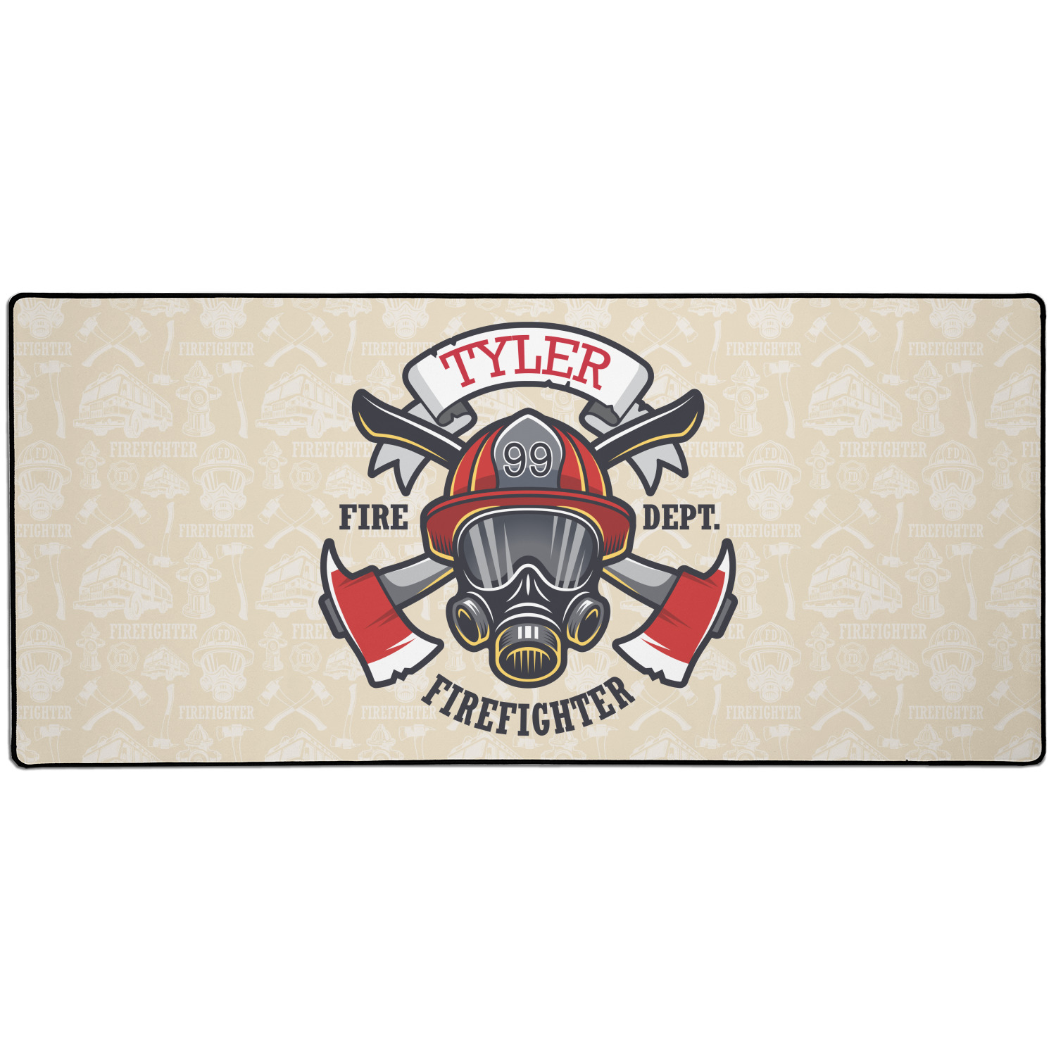 This design features a beautiful illustration of a firefighter's gear with axes. The top banner is where your personalization goes and underneath it says "Firefighter." The main colors are red and grey. The background is a cream and light cream color and has all kinds of fun firefighter symbols and illustrations. This is the perfect way to say thank you to the firefighter in your life.
