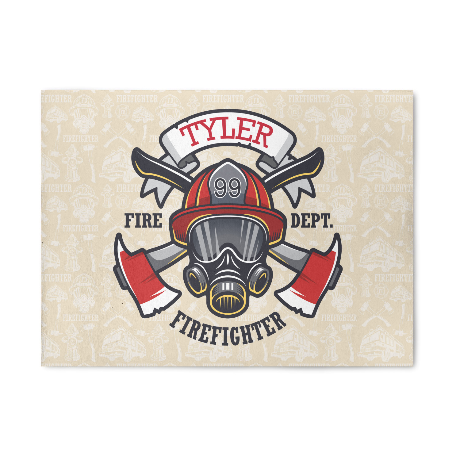This design features a beautiful illustration of a firefighter's gear with axes. The top banner is where your personalization goes and underneath it says "Firefighter." The main colors are red and grey. The background is a cream and light cream color and has all kinds of fun firefighter symbols and illustrations. This is the perfect way to say thank you to the firefighter in your life.