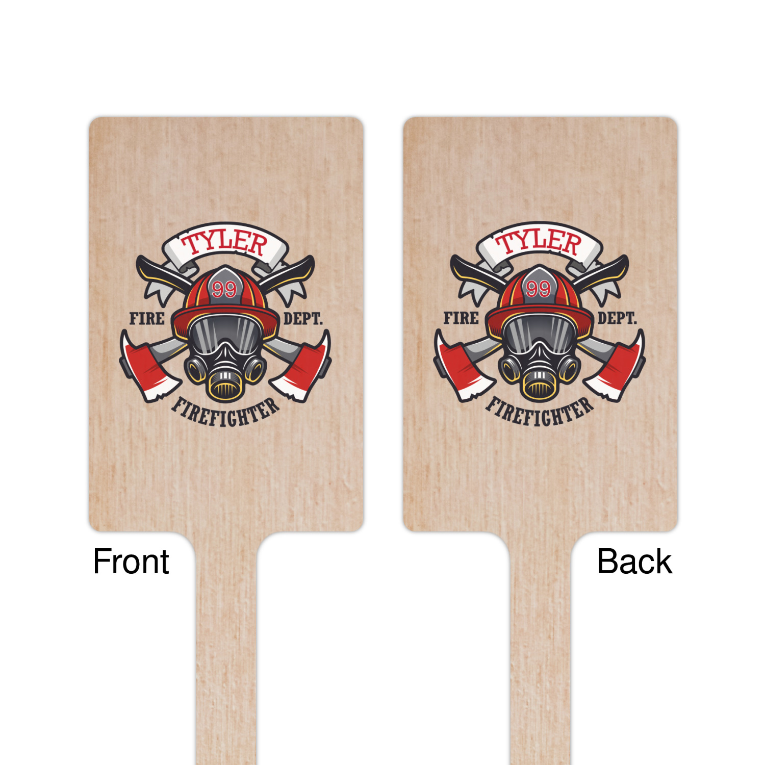 This design features a beautiful illustration of a firefighter's gear with axes. The top banner is where your personalization goes and underneath it says "Firefighter." The main colors are red and grey. The background is a cream and light cream color and has all kinds of fun firefighter symbols and illustrations. This is the perfect way to say thank you to the firefighter in your life.