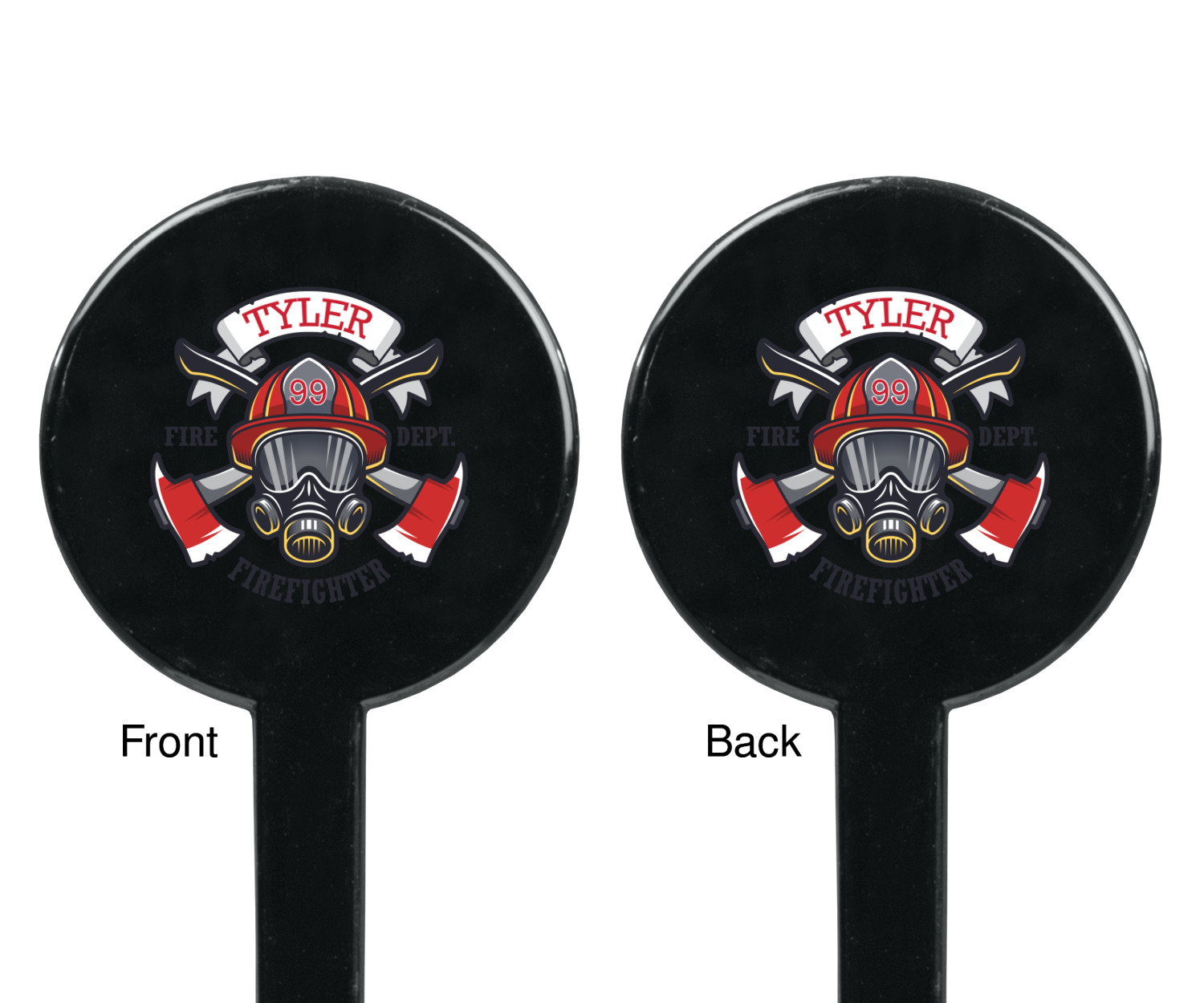 This design features a beautiful illustration of a firefighter's gear with axes. The top banner is where your personalization goes and underneath it says "Firefighter." The main colors are red and grey. The background is a cream and light cream color and has all kinds of fun firefighter symbols and illustrations. This is the perfect way to say thank you to the firefighter in your life.