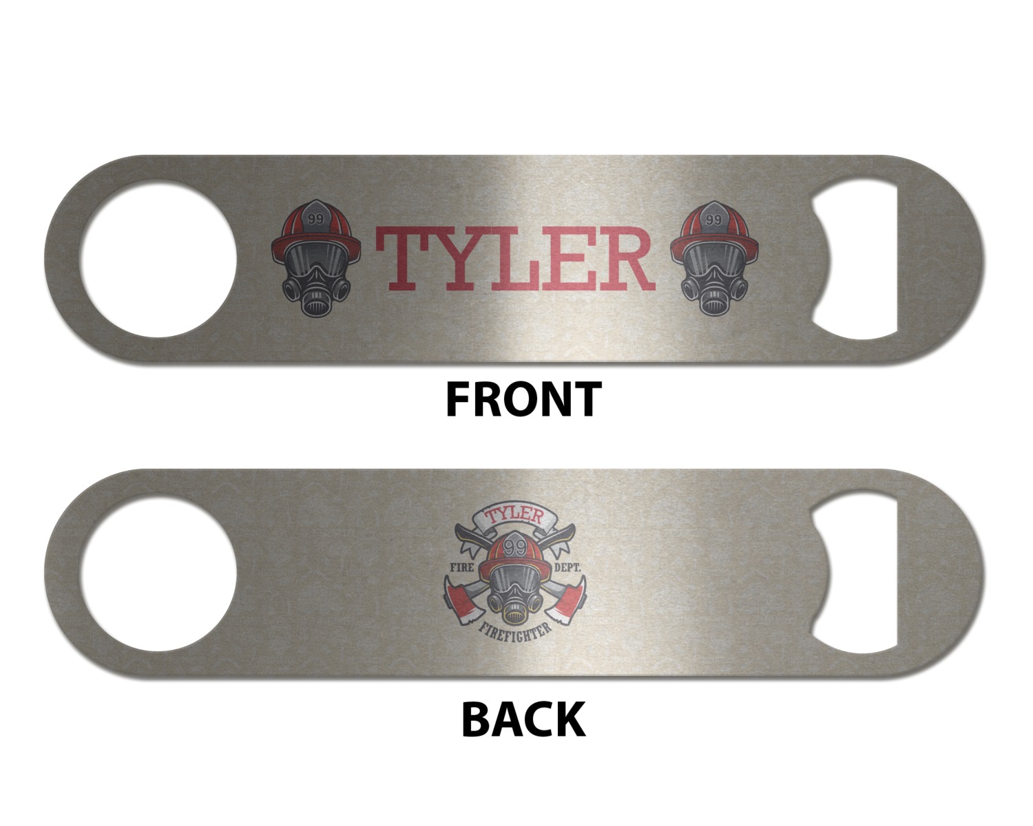 Made from stainless steel, these beer bottle openers are 7 by 1.625 inches, giving you plenty of leverage when trying to open a stubborn bottle. On one end of this personalized bottle opener, you'll find a circular hole for you to hang and display your opener. On the opposite end, you'll find the tool used for opening bottles. This opener in particular has the same structure and style as professional bartender bottle openers. Your customization is sublimated onto both the back and front, and both sides can be customized individually. Choose from one of our two base colors - white or silver.