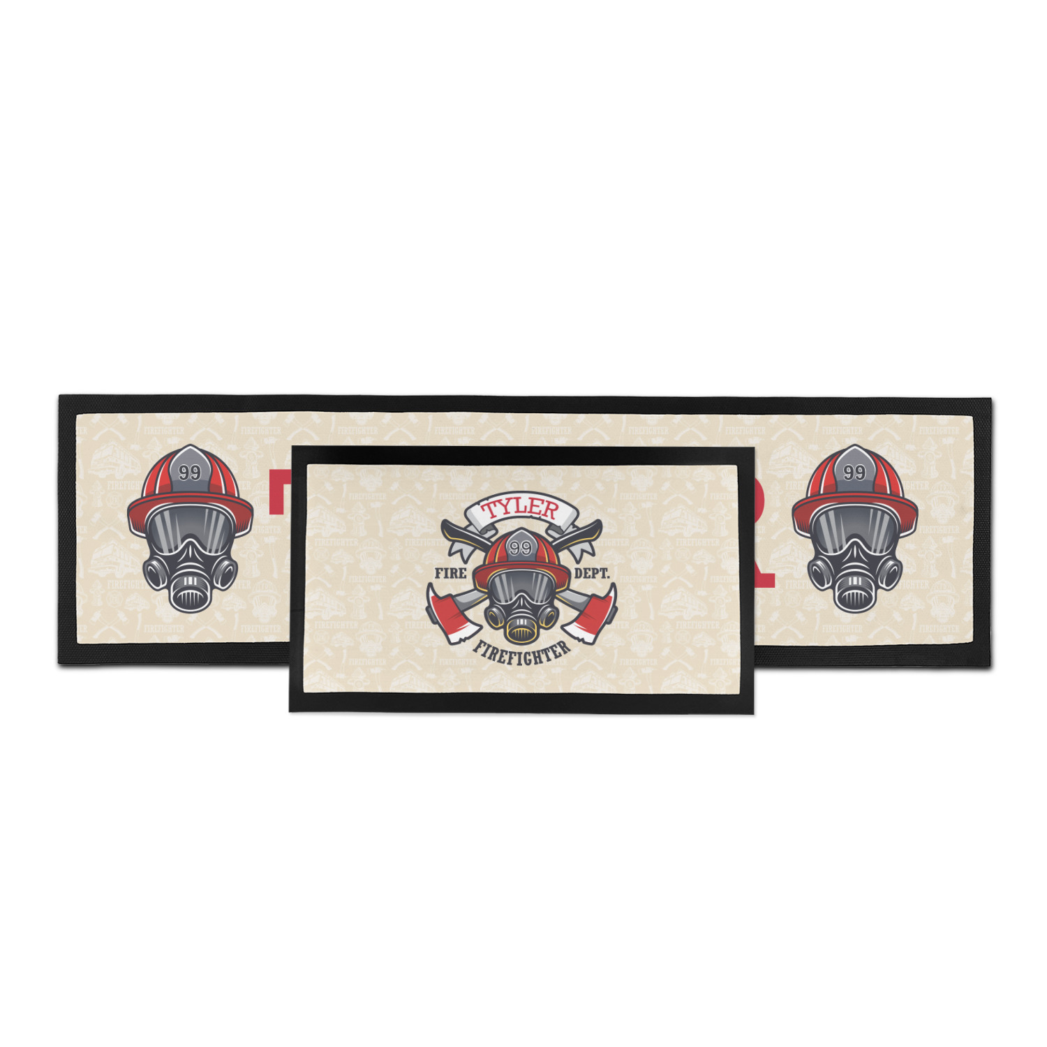 This design features a beautiful illustration of a firefighter's gear with axes. The top banner is where your personalization goes and underneath it says "Firefighter." The main colors are red and grey. The background is a cream and light cream color and has all kinds of fun firefighter symbols and illustrations. This is the perfect way to say thank you to the firefighter in your life.