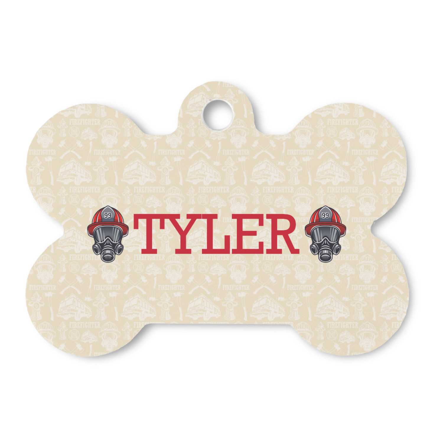 The small bone dog tag size is perfect to pair with our small dog collars, the large size pairs well with our large dog collars.