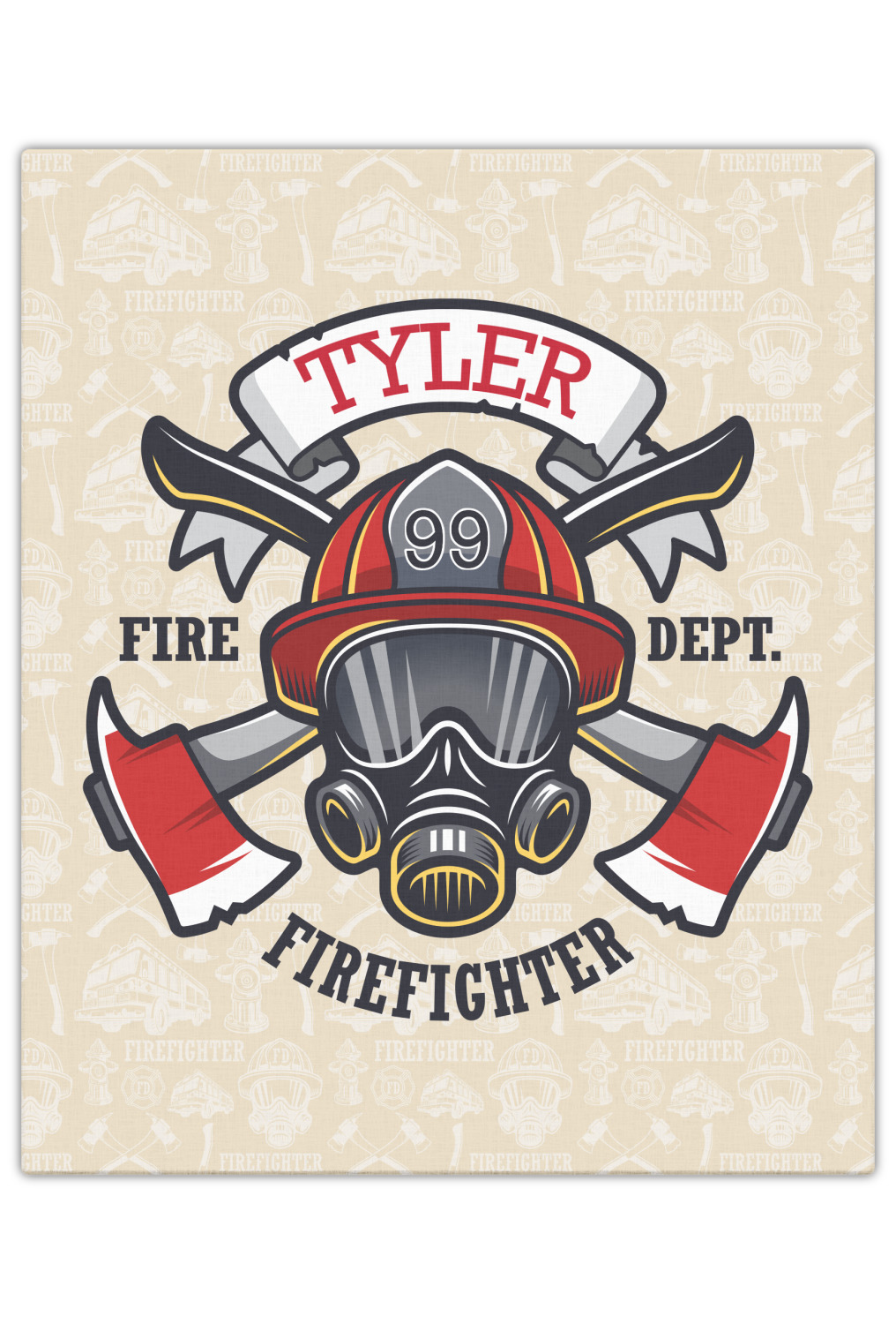This design features a beautiful illustration of a firefighter's gear with axes. The top banner is where your personalization goes and underneath it says "Firefighter." The main colors are red and grey. The background is a cream and light cream color and has all kinds of fun firefighter symbols and illustrations. This is the perfect way to say thank you to the firefighter in your life.