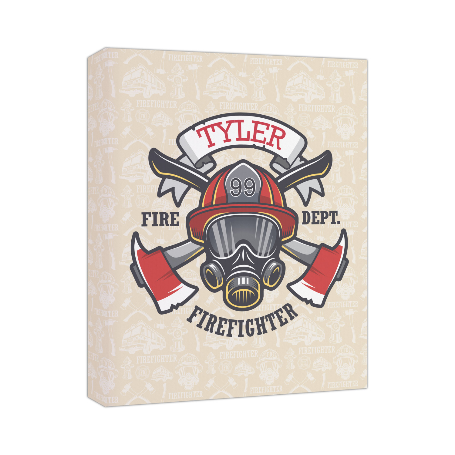This design features a beautiful illustration of a firefighter's gear with axes. The top banner is where your personalization goes and underneath it says "Firefighter." The main colors are red and grey. The background is a cream and light cream color and has all kinds of fun firefighter symbols and illustrations. This is the perfect way to say thank you to the firefighter in your life.