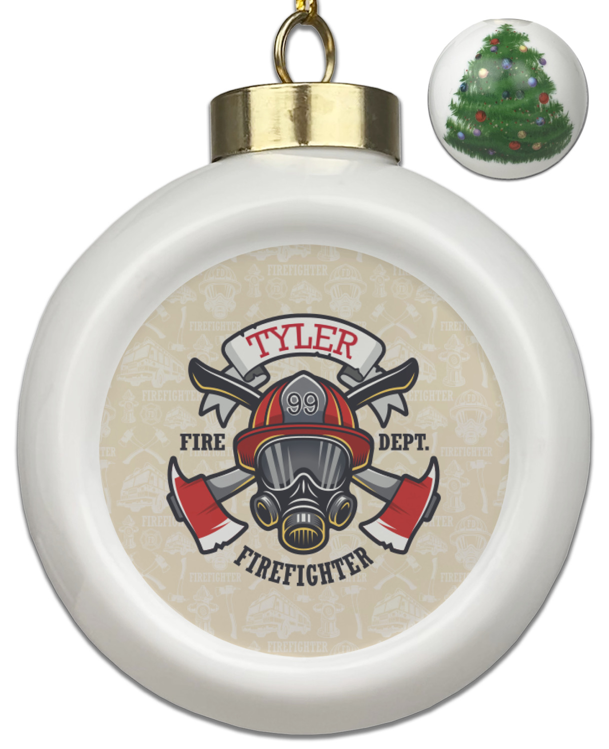 This design features a beautiful illustration of a firefighter's gear with axes. The top banner is where your personalization goes and underneath it says "Firefighter." The main colors are red and grey. The background is a cream and light cream color and has all kinds of fun firefighter symbols and illustrations. This is the perfect way to say thank you to the firefighter in your life.