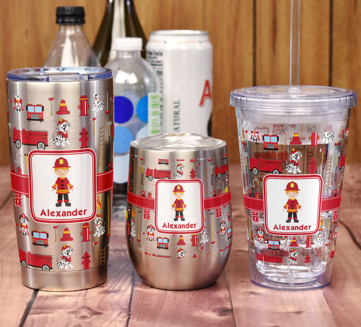 What little boy doesn't dream about growing up and becoming a firefighter? Open his imagination with this adorable design showing your little man ready to save some lives with a whole fleet of fire trucks, fire hydrants, ladders, and poles behind him.