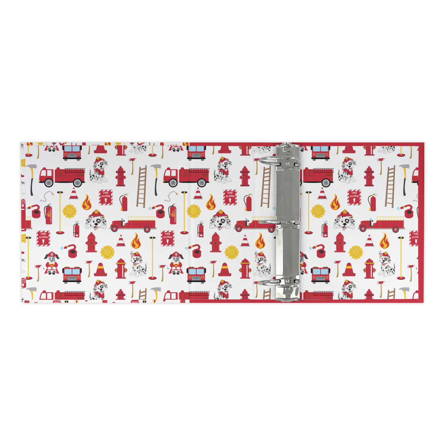 What little boy doesn't dream about growing up and becoming a firefighter? Open his imagination with this adorable design showing your little man ready to save some lives with a whole fleet of fire trucks, fire hydrants, ladders, and poles behind him.
