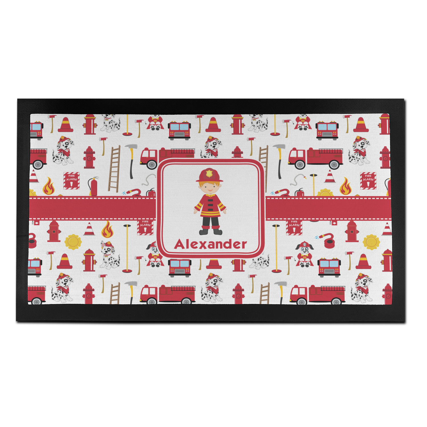 What little boy doesn't dream about growing up and becoming a firefighter? Open his imagination with this adorable design showing your little man ready to save some lives with a whole fleet of fire trucks, fire hydrants, ladders, and poles behind him.