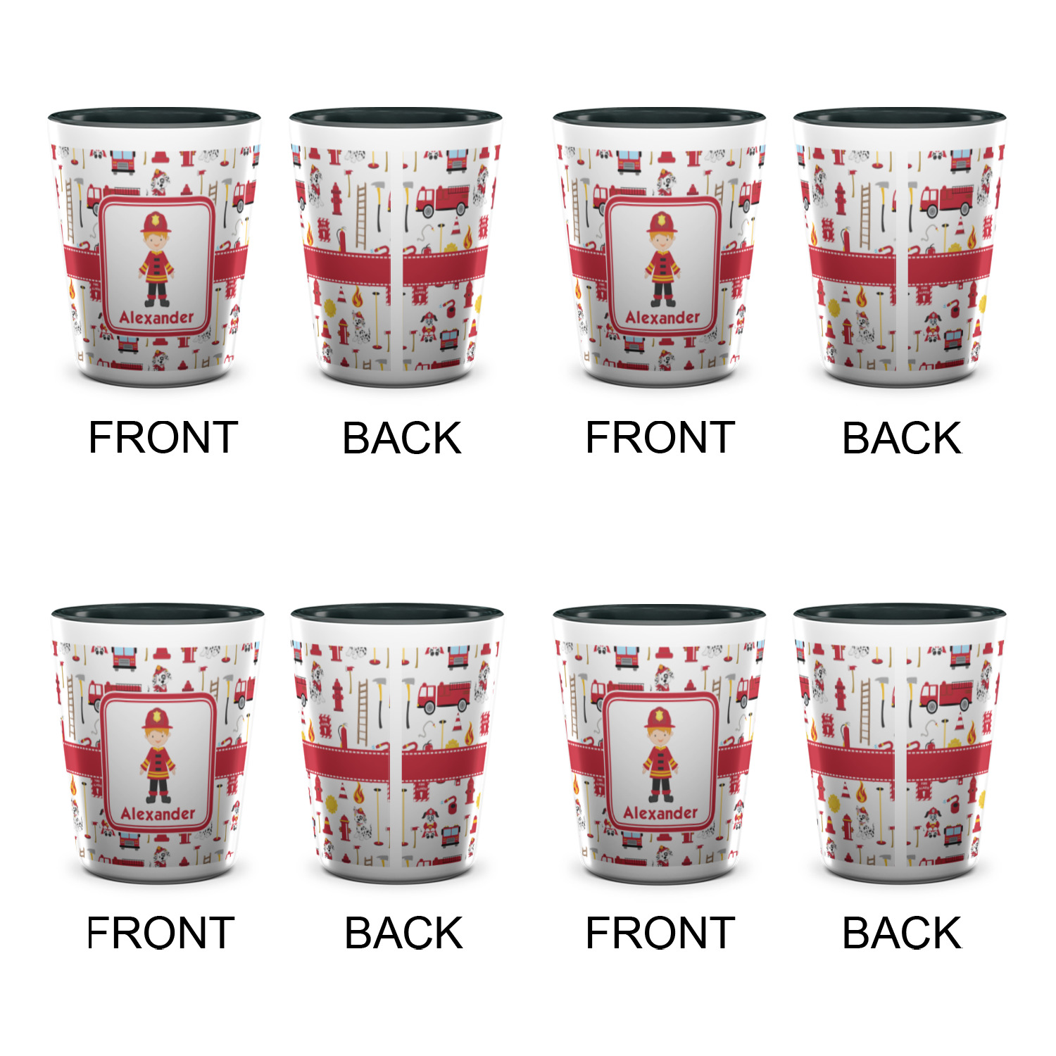 Made from ceramic these shot glasses are printed in full color with the design of your choice. These are a standard 1.5oz size and stand 2.25" tall. Available in a full white ceramic or a two-tone with a black color inside the shot glass. Buy a single or a set of 4, all of which can be designed separately to get you just what you want and need.