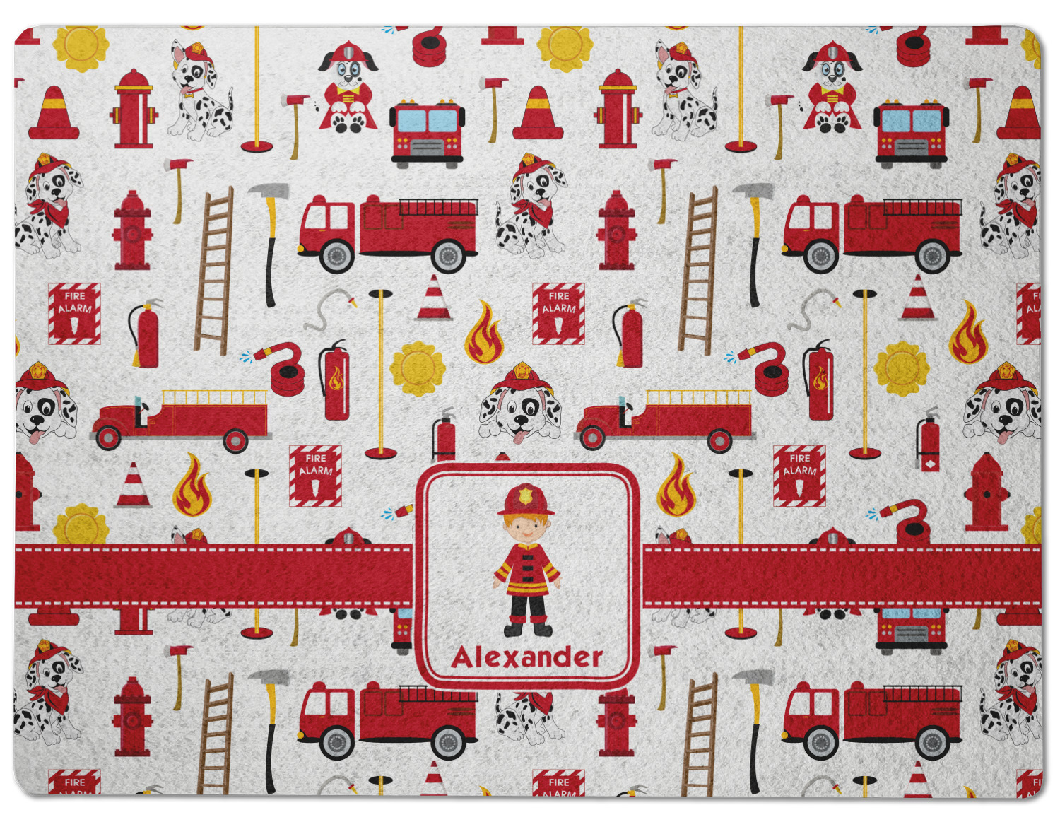 What little boy doesn't dream about growing up and becoming a firefighter? Open his imagination with this adorable design showing your little man ready to save some lives with a whole fleet of fire trucks, fire hydrants, ladders, and poles behind him.