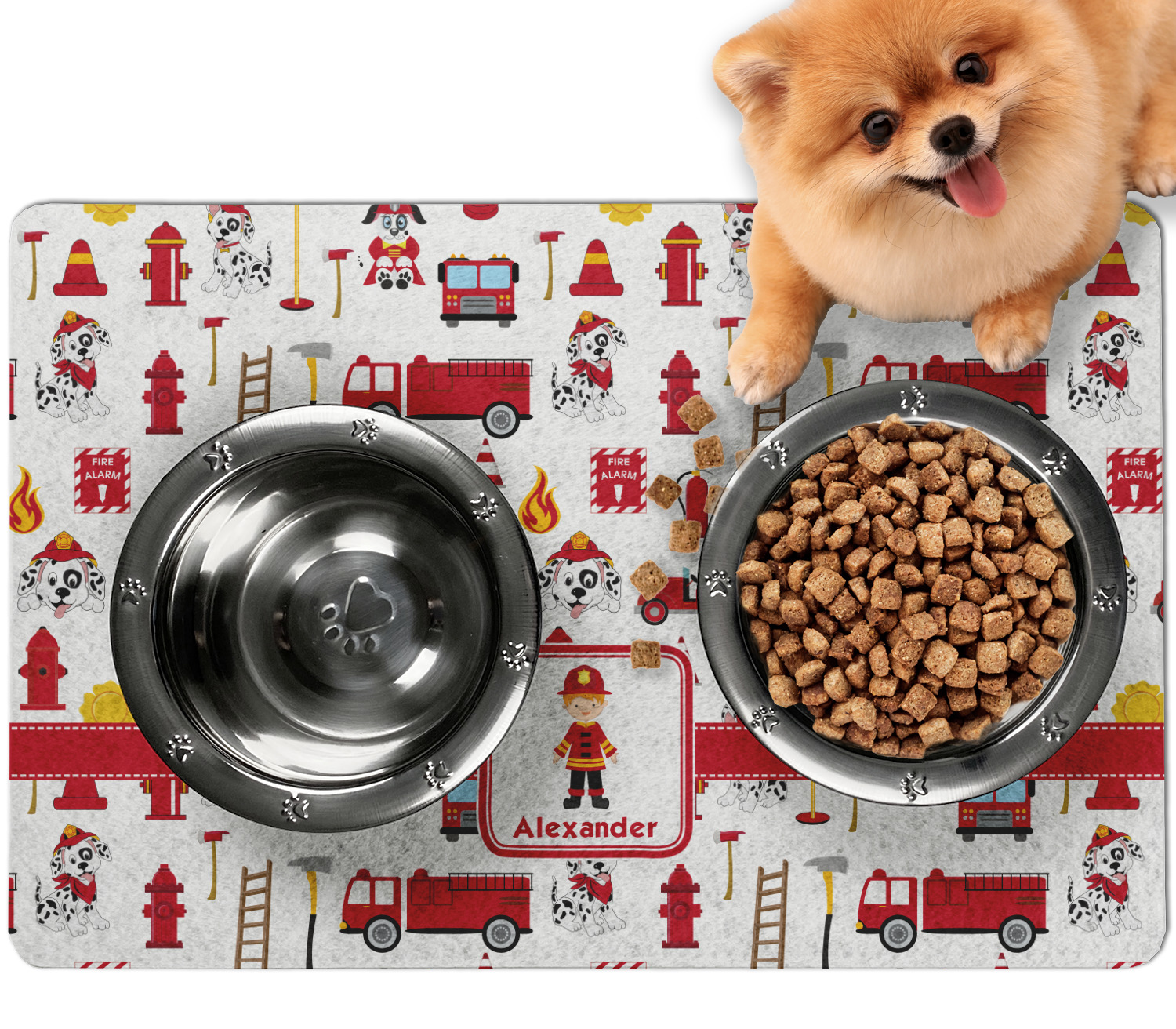 This dog bowl mat, fabricated from polyester, proudly displays your customized design on its top, while its bottom includes a non-slip rubber. This feature allows it to remain firmly in place, even when your dog spills his/her water. With 3 sizes available (18" x 12", 24" x 18", 30" x 24"), the pet food mat has ample space for both a food and water bowl for any sized dogs. Though specified for dogs' use, these mats are also a splendid option for cats.