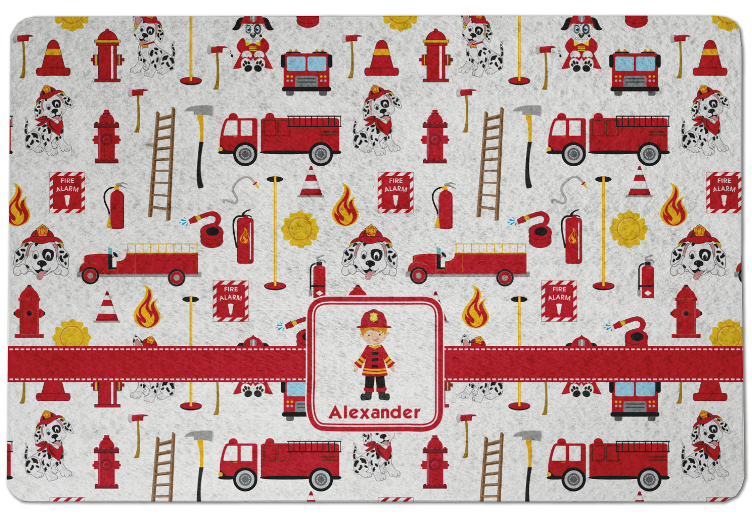 What little boy doesn't dream about growing up and becoming a firefighter? Open his imagination with this adorable design showing your little man ready to save some lives with a whole fleet of fire trucks, fire hydrants, ladders, and poles behind him.
