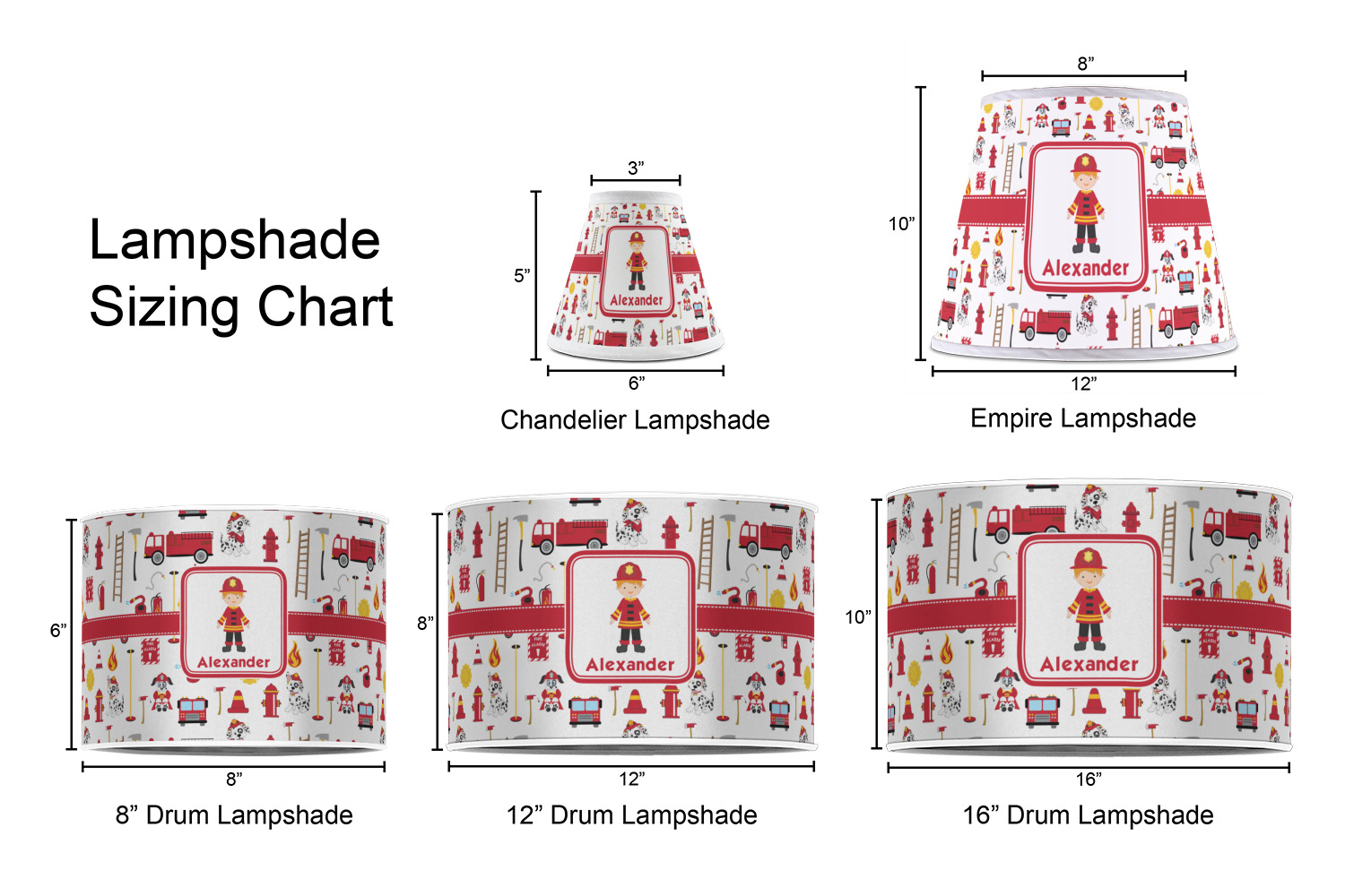 Our customized lamp shades also come in 3 different sizes: 8", 12" and 16", measuring at 8" in diameter by 6" tall, 12" in diameter by 8" tall, and 16" in diameter by 10" tall, respectively.