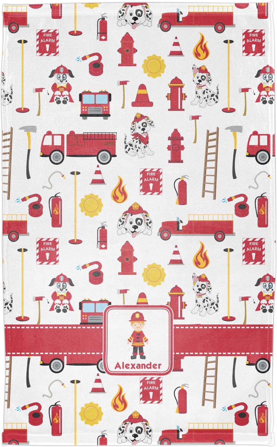 What little boy doesn't dream about growing up and becoming a firefighter? Open his imagination with this adorable design showing your little man ready to save some lives with a whole fleet of fire trucks, fire hydrants, ladders, and poles behind him.