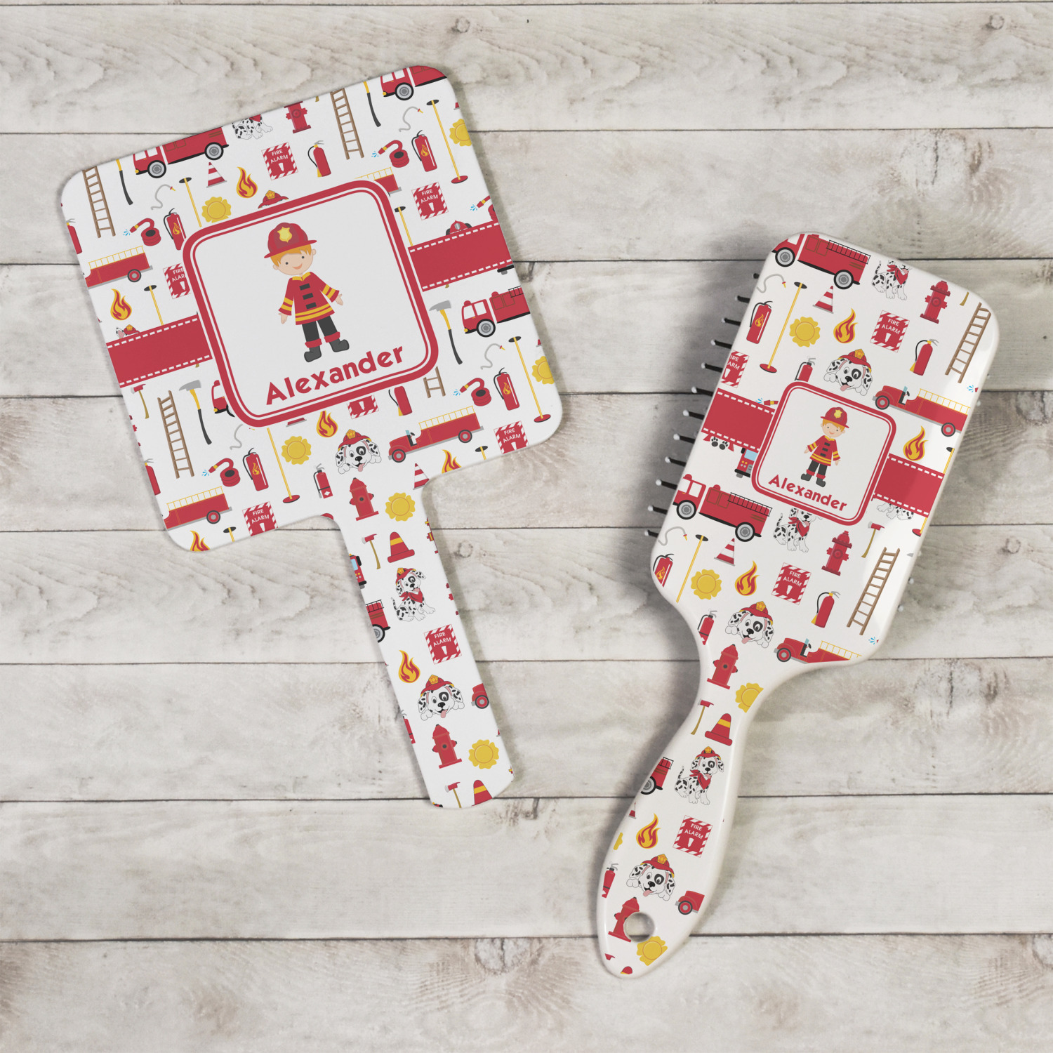 What little boy doesn't dream about growing up and becoming a firefighter? Open his imagination with this adorable design showing your little man ready to save some lives with a whole fleet of fire trucks, fire hydrants, ladders, and poles behind him.