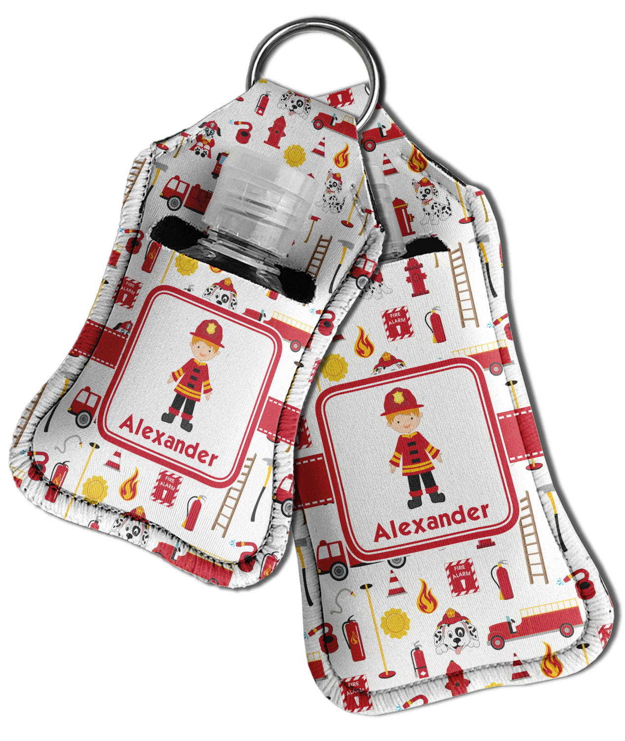 Each hand sanitizer holder comes with its own empty travel-sized, refillable hand sanitizer sure to fit snug in your customized sanitizer case! Our hand sanitizer cases are a durable, yet soft neoprene material sure to last any daily activities or travel agenda. Customize and personalize a hand sanitizer bottle holder with one of our two sizes - small (4.25" x 2.25") or large (5.5" x 2.5"). Each travel sanitizer holder comes with a keyring for attachment on bags, keys, or more!