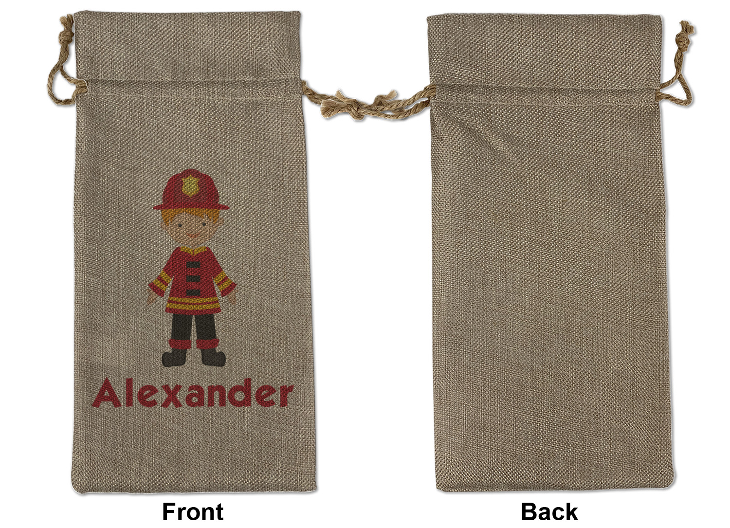 We sell our Burlap Gift Bags in 3 variant sized bags. Made with burlap polyester, each personalized bag can be secured with a twine drawstring pull. Your custom design is available to print on one side or both sides - completely up to you! The sizes of the bags measure approximately 4.5" x 6.5" for the smallest size, 6.5" x 8.0" for the medium size, and 6.5" x 13.5" for the large-sized bag.