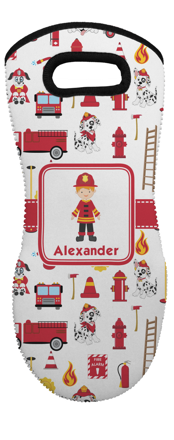These heat resistant gloves are made entirely of a durable neoprene; the front features a softer texture, while the palm's side has a textured surface, meant to handle heat up to 500 degrees Fahrenheit. Thick, heavy duty stitching connects the two sides. A small, oval cutout appears on the front, and can be used to hang and store the mitt. Your personalization appears on the front, and the upper part of the back of the mitt. The style of these oven mitts are suitable for both the right and left hand, depending on your needs. If you need one for each hand, be sure to order two!