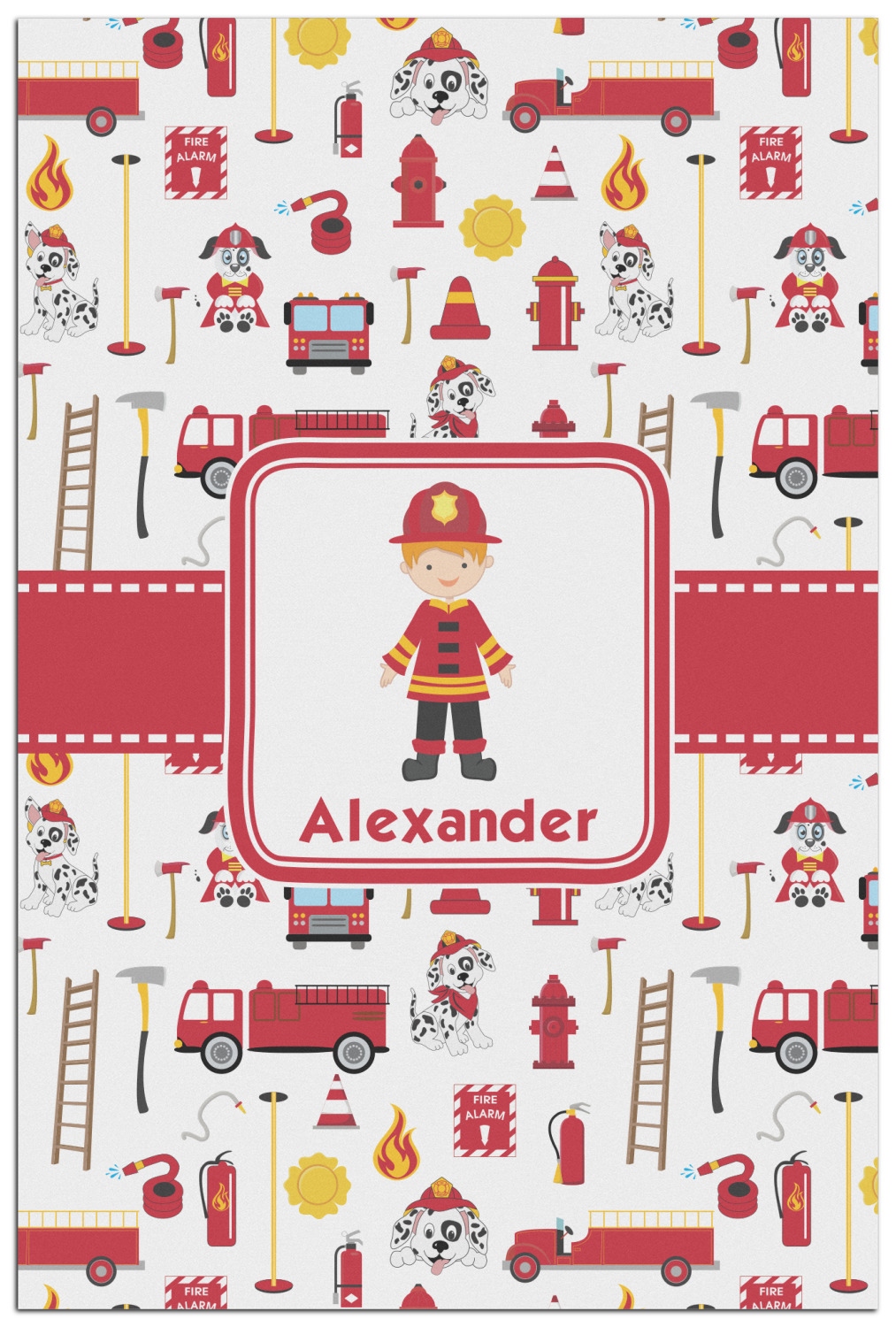 What little boy doesn't dream about growing up and becoming a firefighter? Open his imagination with this adorable design showing your little man ready to save some lives with a whole fleet of fire trucks, fire hydrants, ladders, and poles behind him.