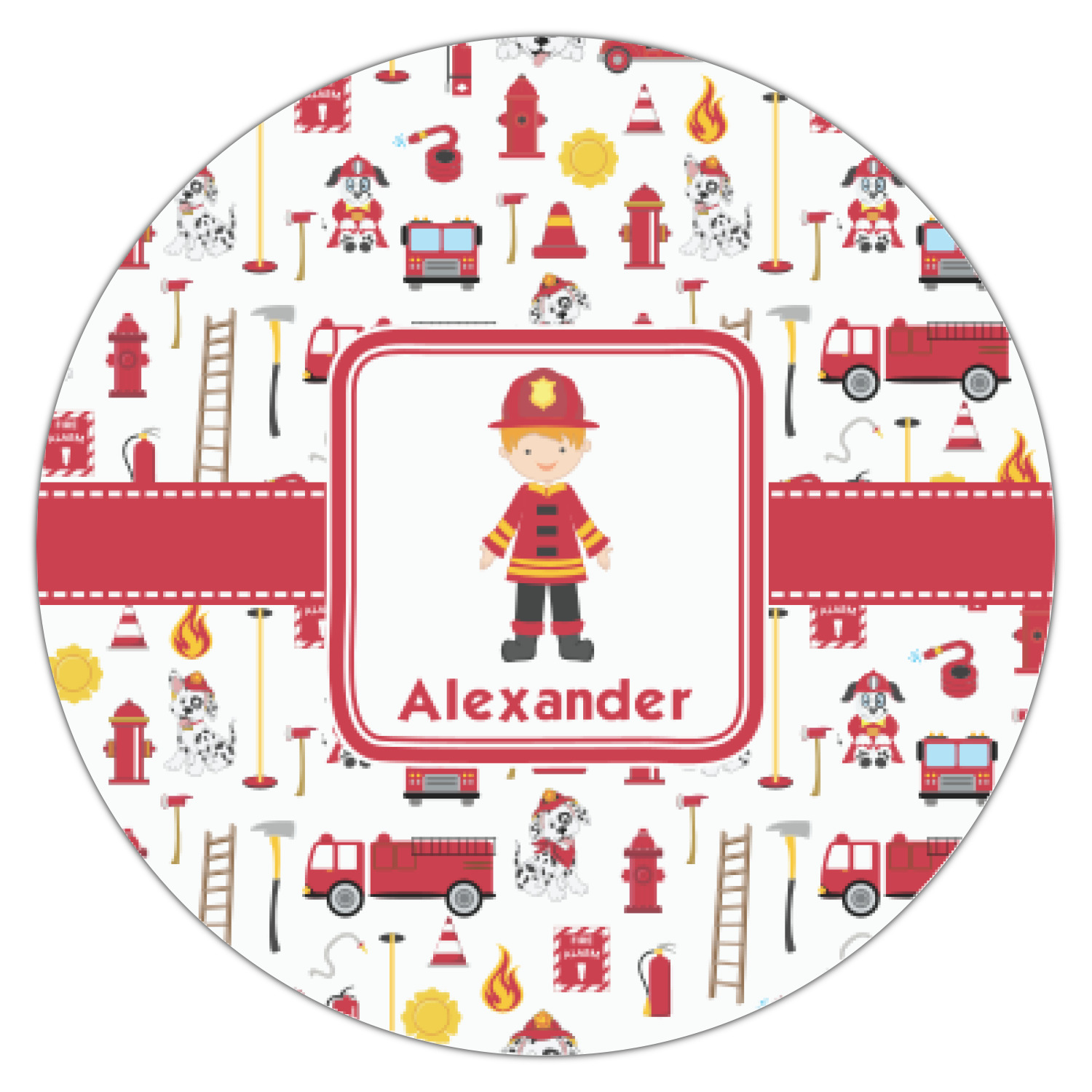 What little boy doesn't dream about growing up and becoming a firefighter? Open his imagination with this adorable design showing your little man ready to save some lives with a whole fleet of fire trucks, fire hydrants, ladders, and poles behind him.