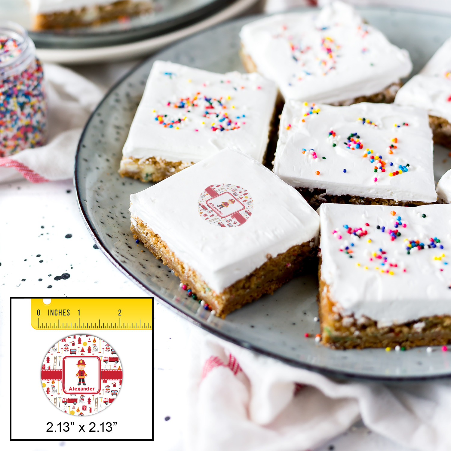 Your customized cookie toppers can be placed on top of any dessert with an icing top.The icing helps adhere the cookie topper to the dessert.