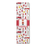 What little boy doesn't dream about growing up and becoming a firefighter? Open his imagination with this adorable design showing your little man ready to save some lives with a whole fleet of fire trucks, fire hydrants, ladders, and poles behind him.