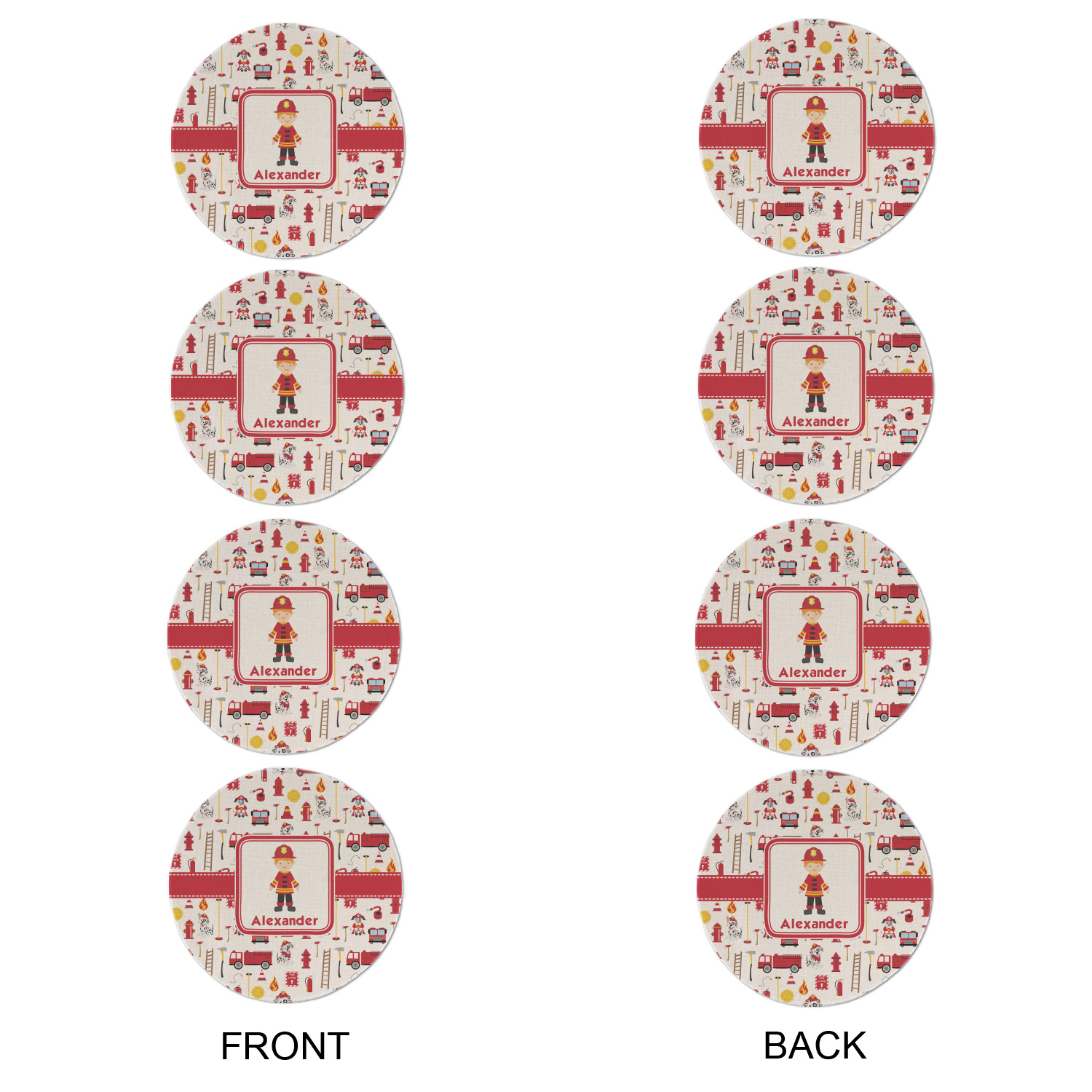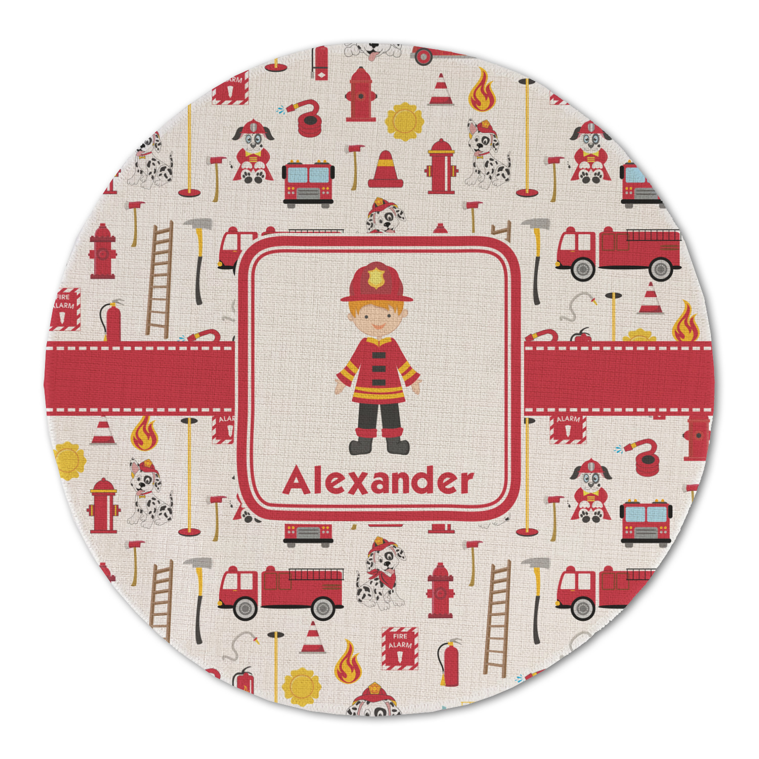 What little boy doesn't dream about growing up and becoming a firefighter? Open his imagination with this adorable design showing your little man ready to save some lives with a whole fleet of fire trucks, fire hydrants, ladders, and poles behind him.