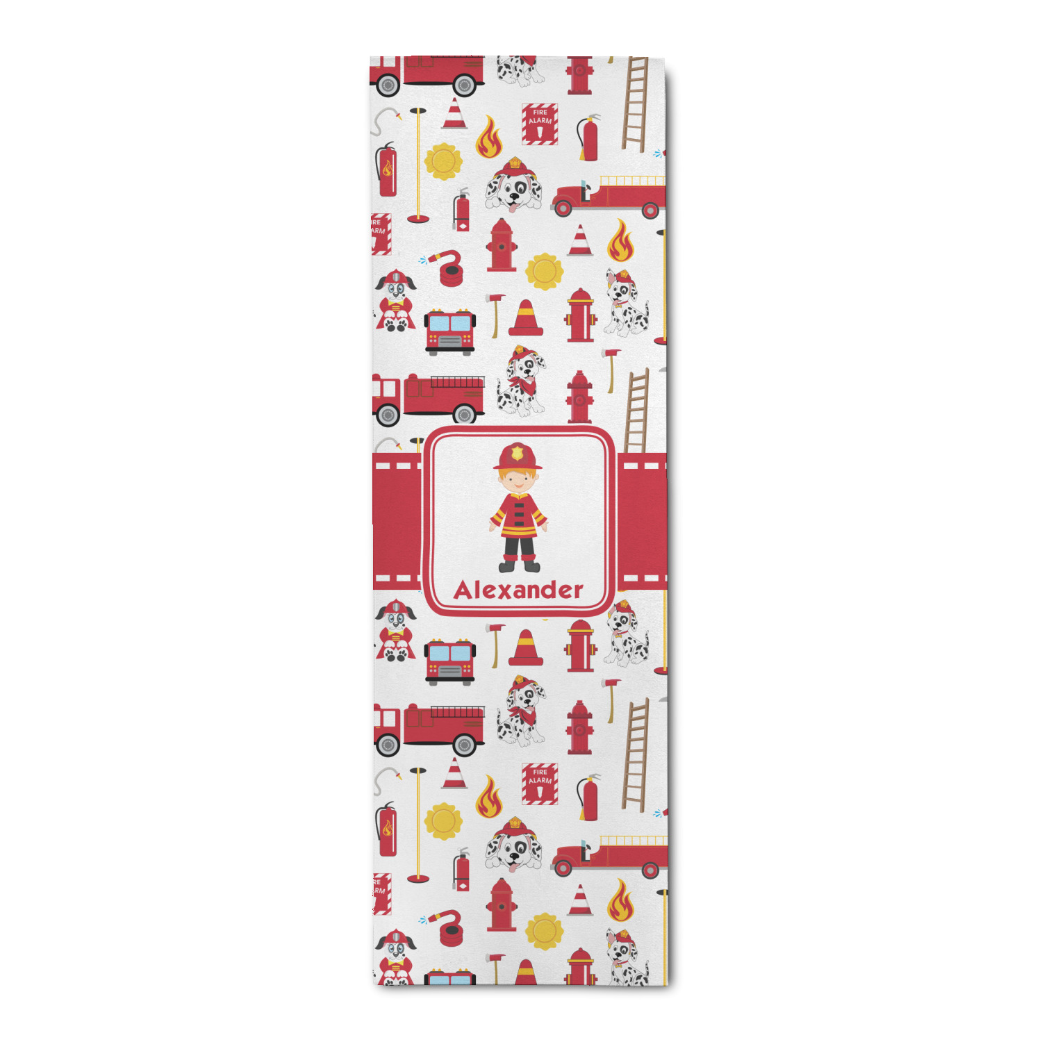 What little boy doesn't dream about growing up and becoming a firefighter? Open his imagination with this adorable design showing your little man ready to save some lives with a whole fleet of fire trucks, fire hydrants, ladders, and poles behind him.