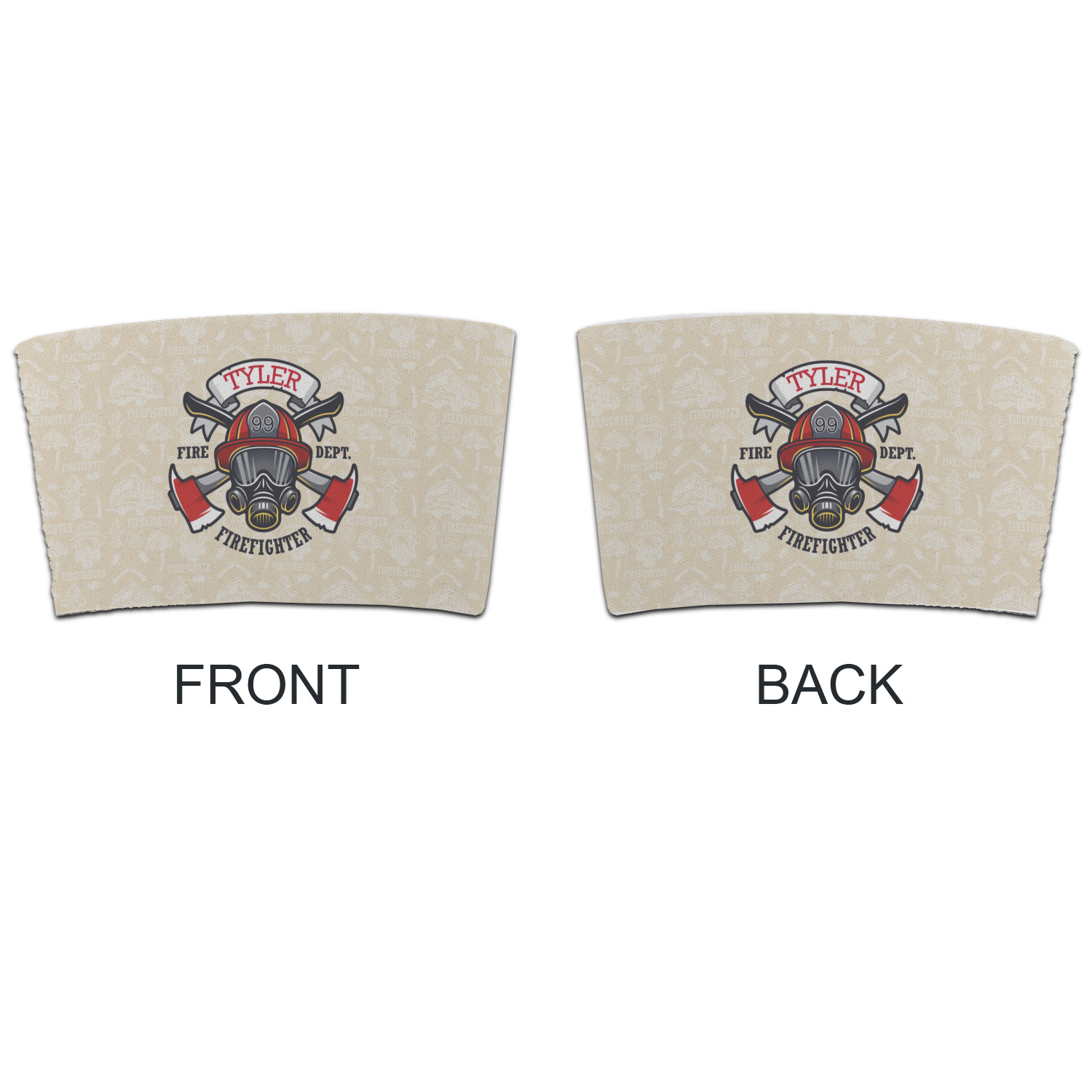 This design features a beautiful illustration of a firefighter's gear with axes. The top banner is where your personalization goes and underneath it says "Firefighter." The main colors are red and grey. The background is a cream and light cream color and has all kinds of fun firefighter symbols and illustrations. This is the perfect way to say thank you to the firefighter in your life.