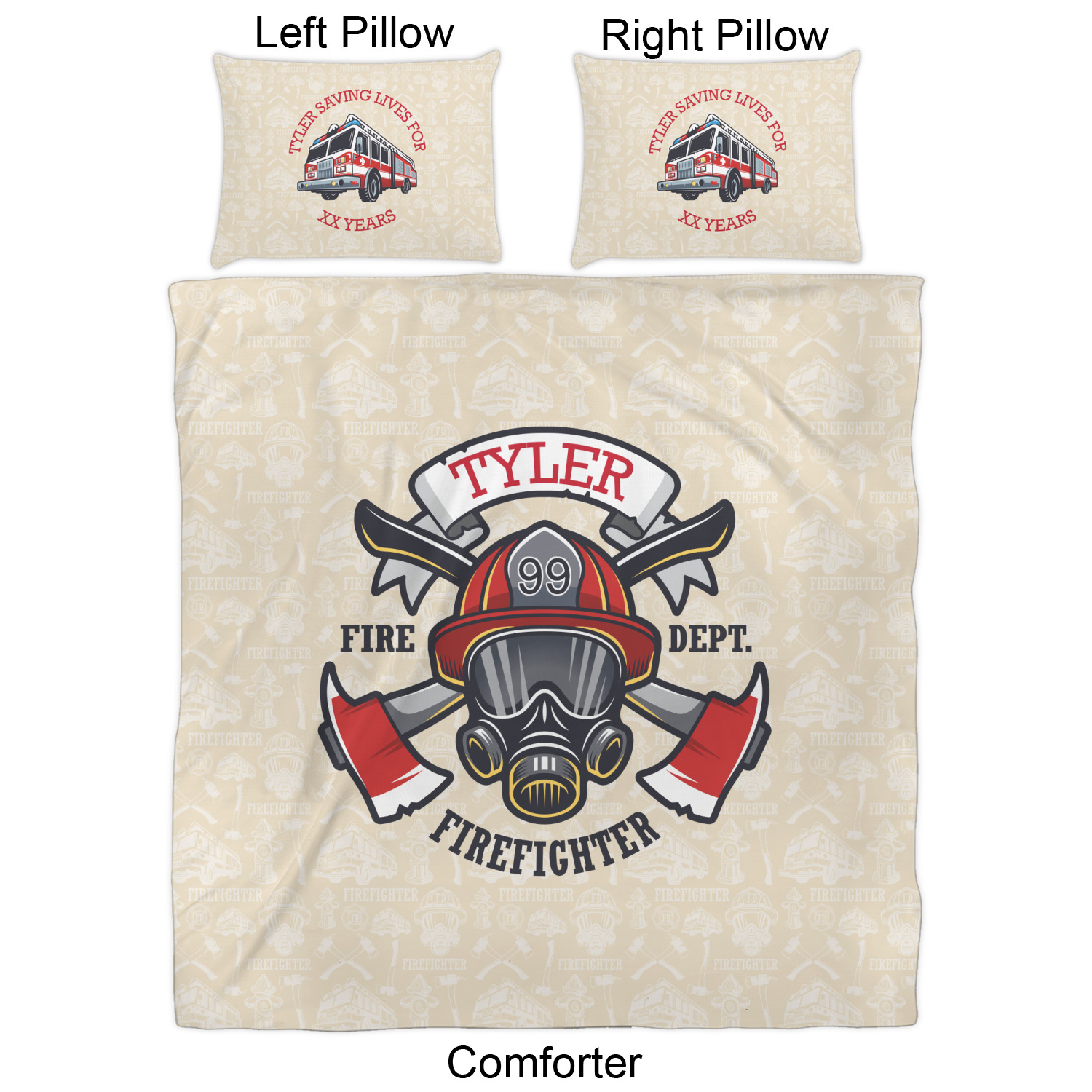 This design features a beautiful illustration of a firefighter's gear with axes. The top banner is where your personalization goes and underneath it says "Firefighter." The main colors are red and grey. The background is a cream and light cream color and has all kinds of fun firefighter symbols and illustrations. This is the perfect way to say thank you to the firefighter in your life.