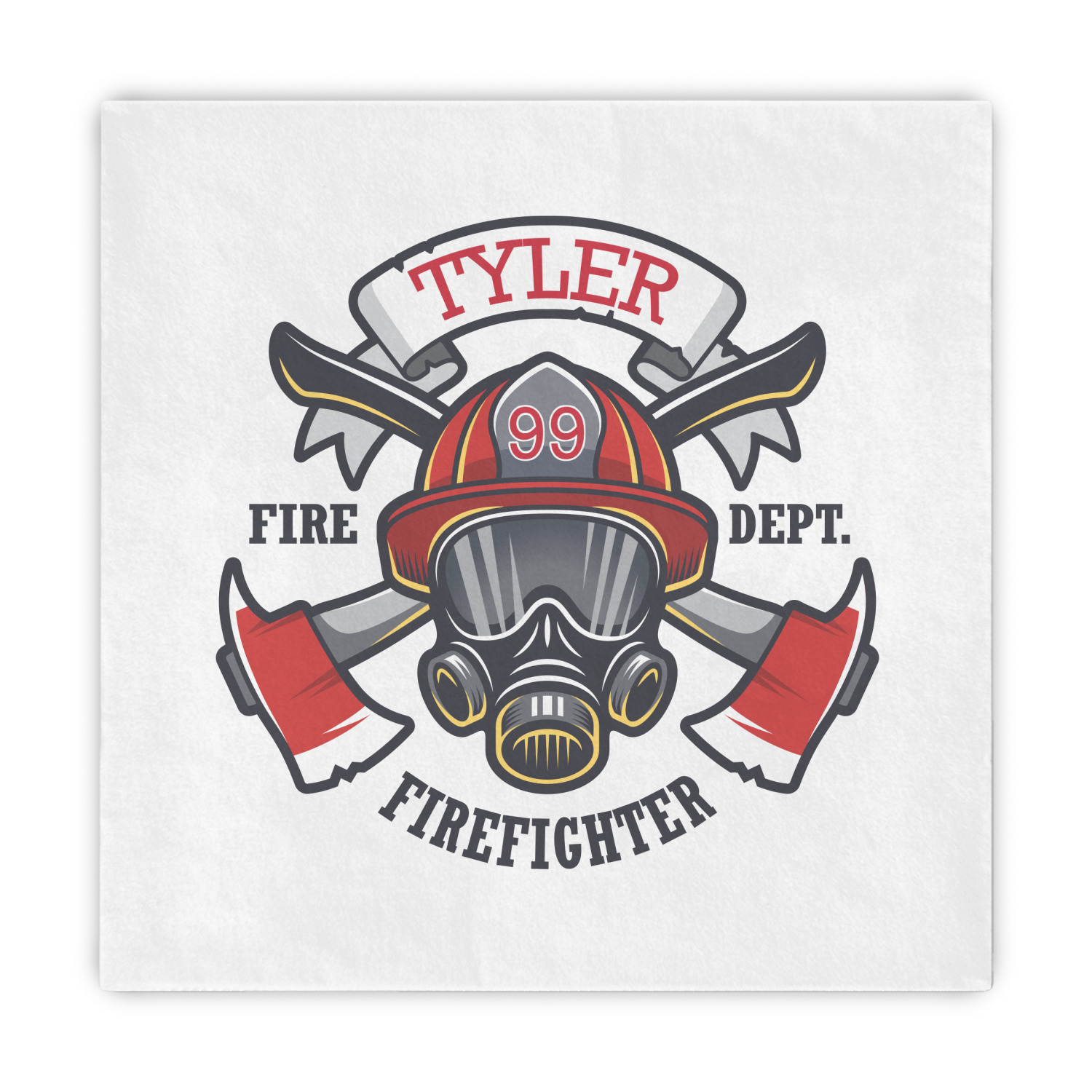 This design features a beautiful illustration of a firefighter's gear with axes. The top banner is where your personalization goes and underneath it says "Firefighter." The main colors are red and grey. The background is a cream and light cream color and has all kinds of fun firefighter symbols and illustrations. This is the perfect way to say thank you to the firefighter in your life.