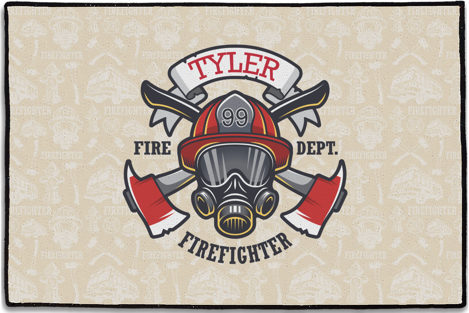 This design features a beautiful illustration of a firefighter's gear with axes. The top banner is where your personalization goes and underneath it says "Firefighter." The main colors are red and grey. The background is a cream and light cream color and has all kinds of fun firefighter symbols and illustrations. This is the perfect way to say thank you to the firefighter in your life.